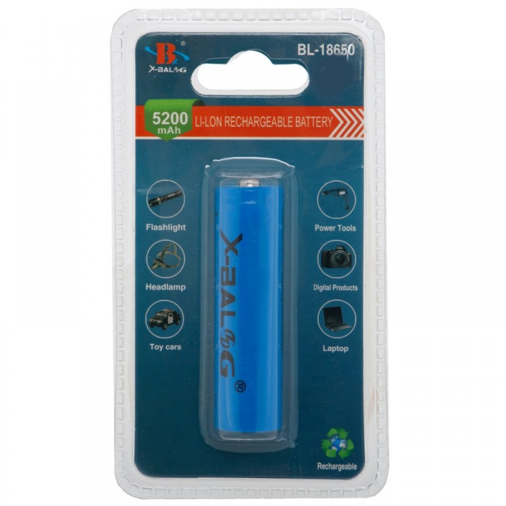 Аккумуляторная батарея 18650 X-BALOG 18650 3.7V, 4.2V 9.6wh 8800 mah (цена за 1шт, литиевая батарея 18650 Li Cell, уп. блистер) TY-9345
