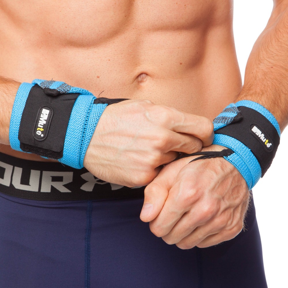 Кистевые бинты защищают мышцы и сухожилья предплечий при работе с большими весами. Аксессуар фиксируется на большом пальце, что позволяет качественнее затянуть бинт. Его можно использовать для выполнения тяги или жима лежа.