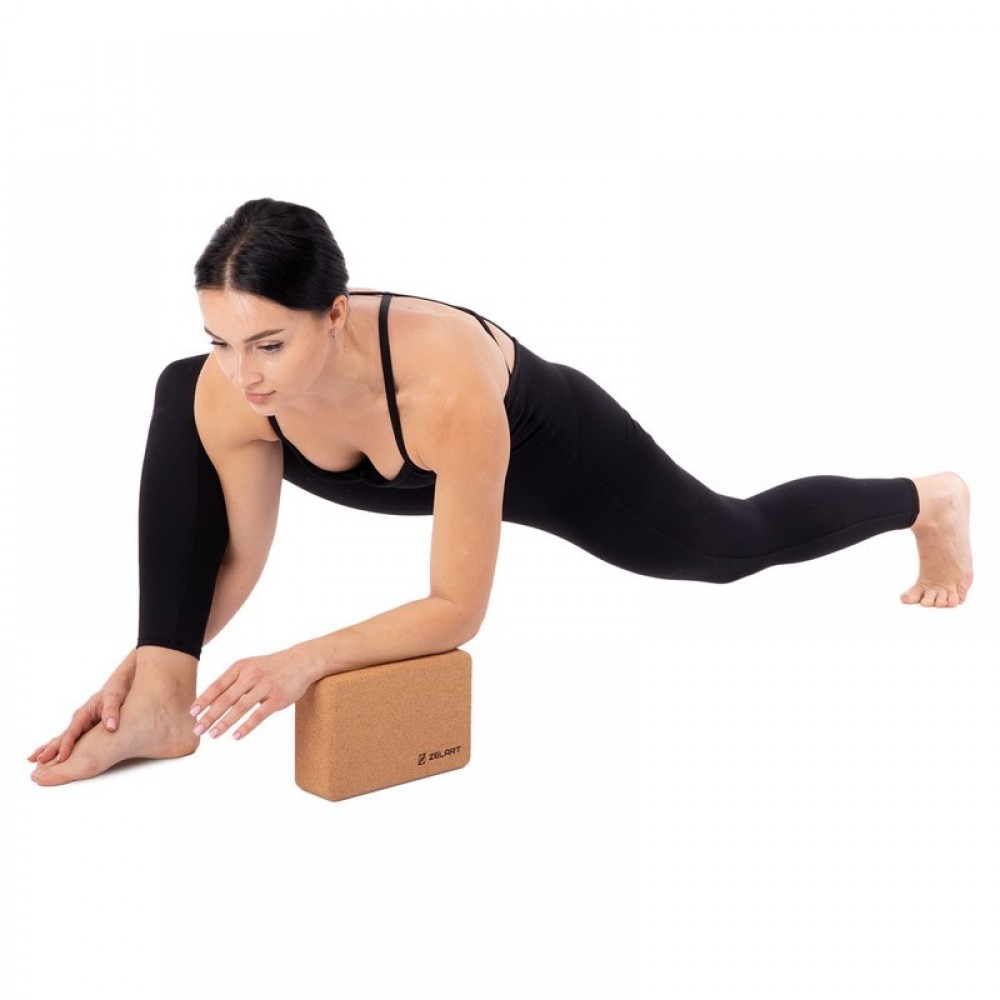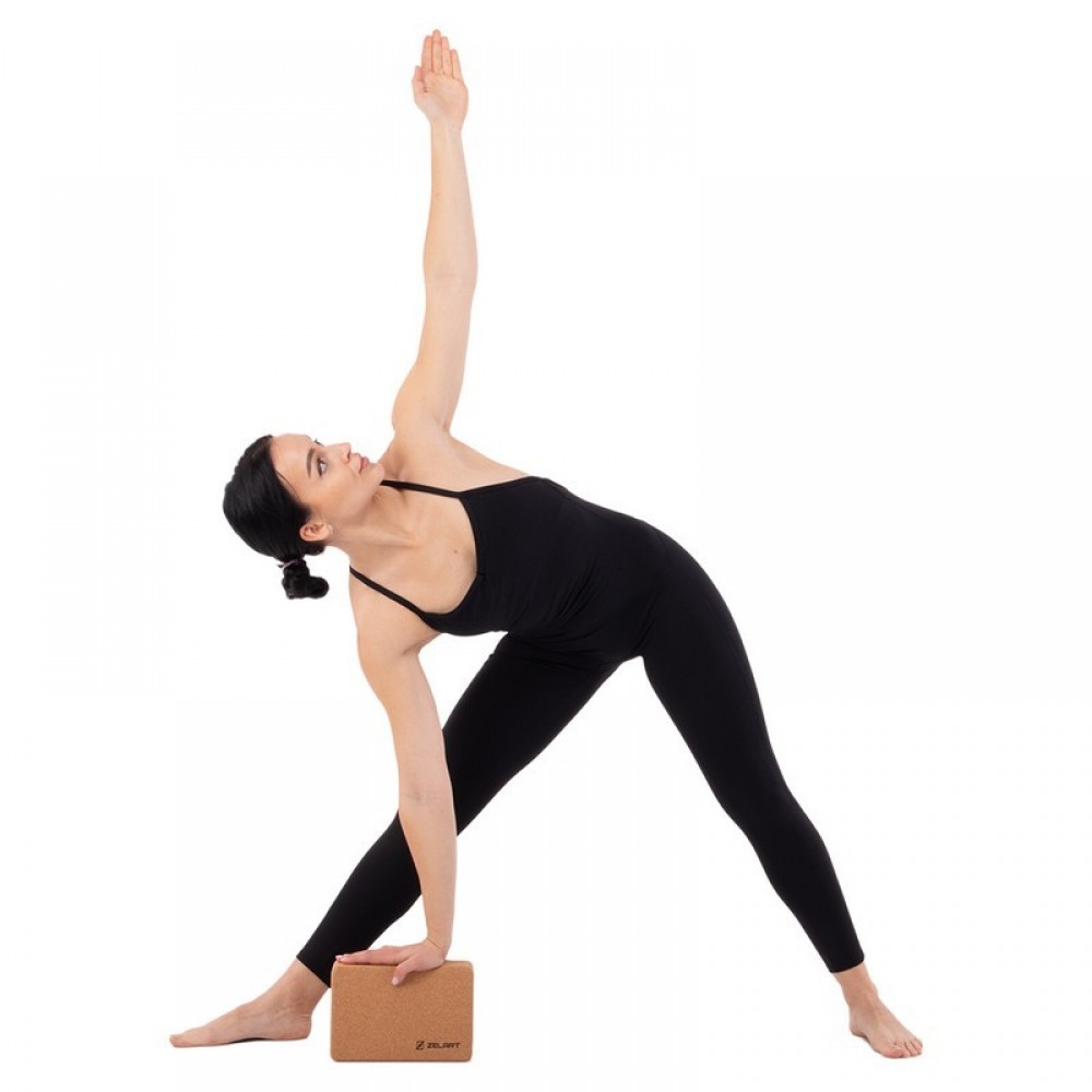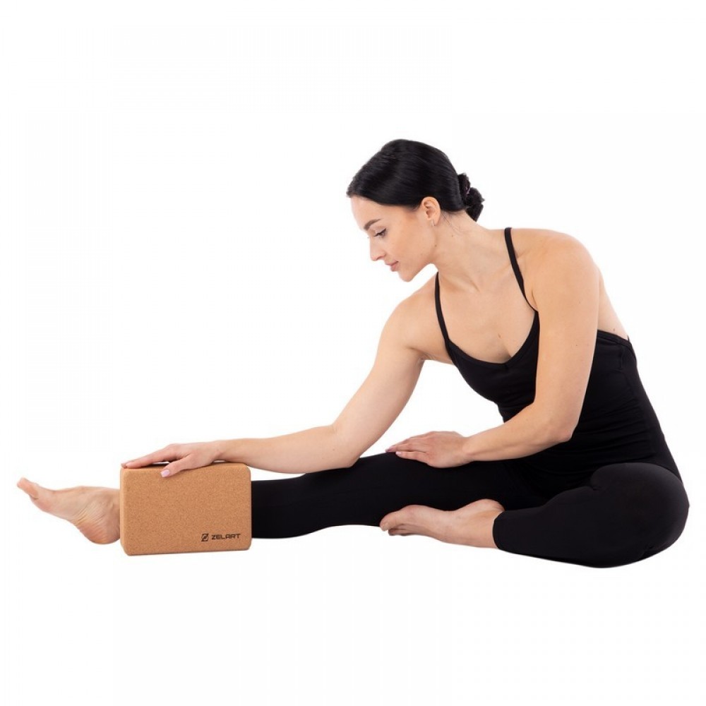 Блок для йоги пробковый Zelart FI-7850-3 коричневый
