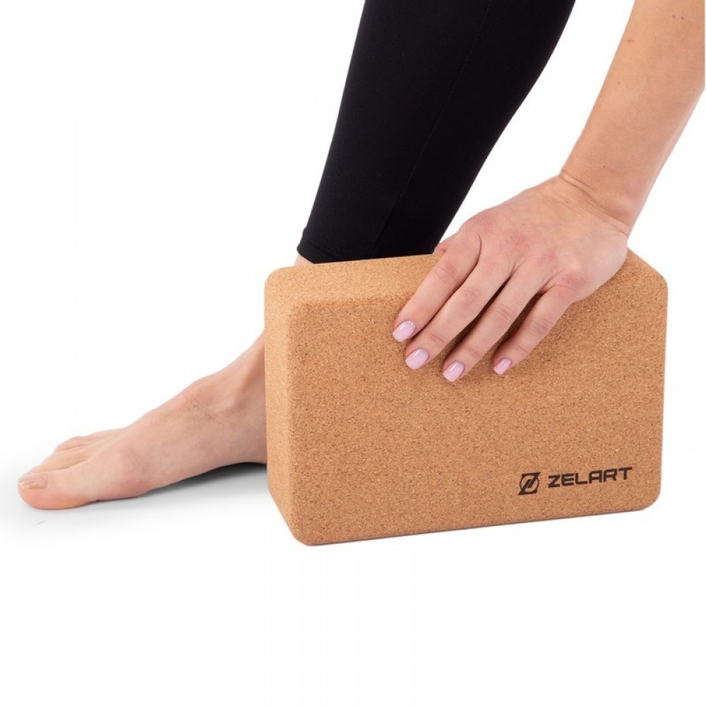 Блок, йоги, пробковый, Zelart, FI-7850-3, коричневый