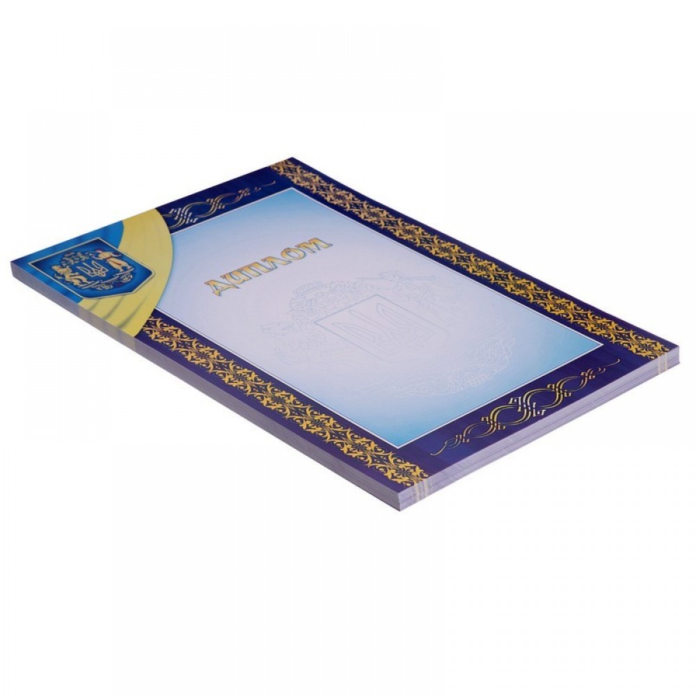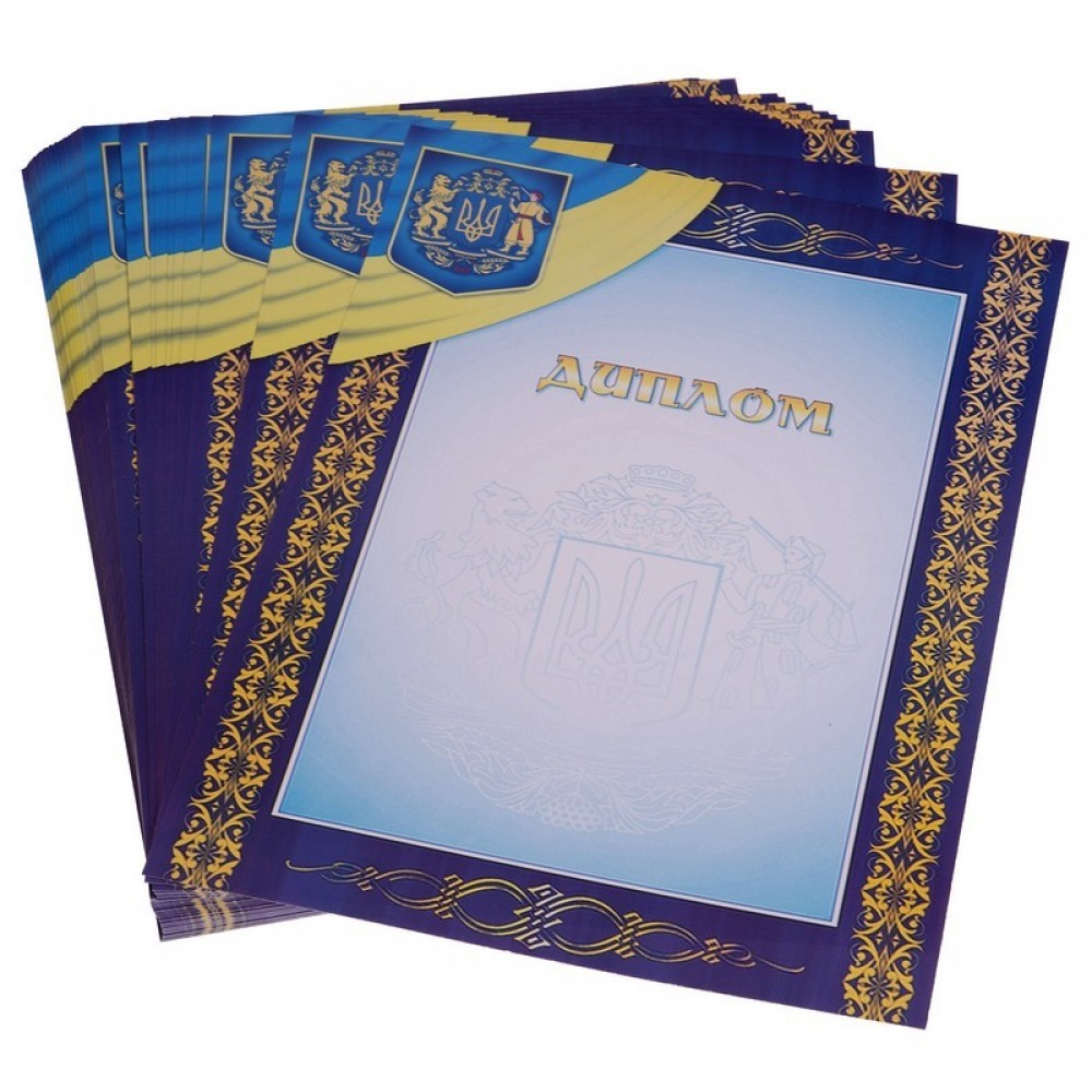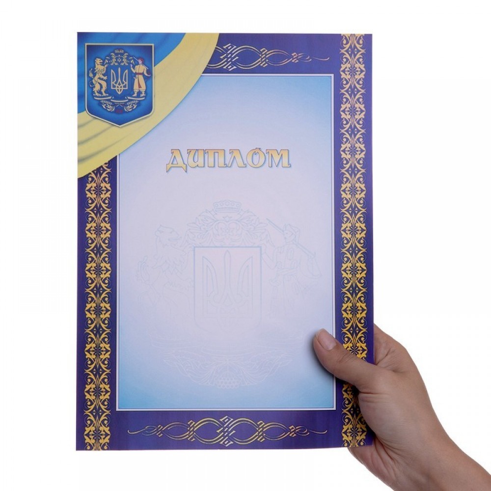 На дипломе напечатан флаг и герб Украины. Помимо этих элементов, на нем можно легко написать от руки любой текст. Так как диплом имеет стандартный размер А4, его можно вложить в принтер вместо обычной бумаги. С помощью принтера на грамоте можно напечатать любой текст.