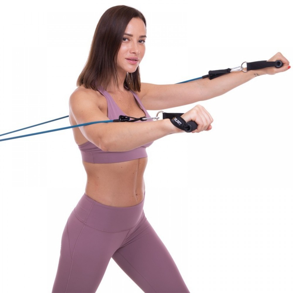 Для работы над мышцами верха тела в комплекте идут две рукояти, состоящие из пластиковой трубки и ремня из полиэстера. В свою очередь для ног предусмотрены широкие мягкие манжеты с регулировочными ремнями, что позволяет подогнать их точно по обхвату щиколотки.