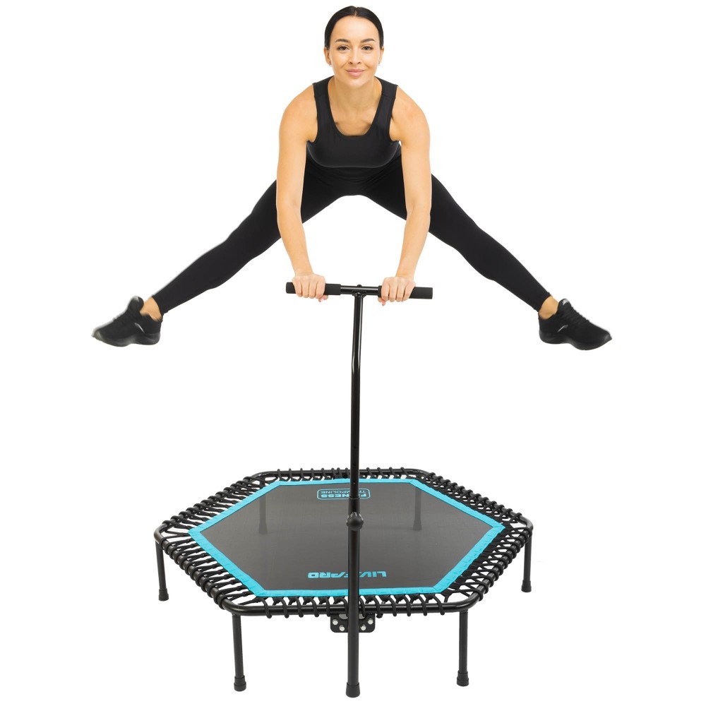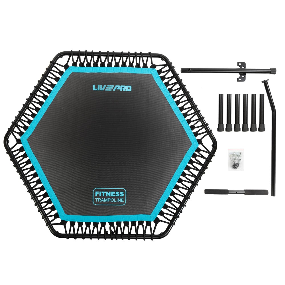 Фитнес, батут, джампинга, шестиугольный, ручкой, LiveUp, LP8251, ø135см, черный-синий