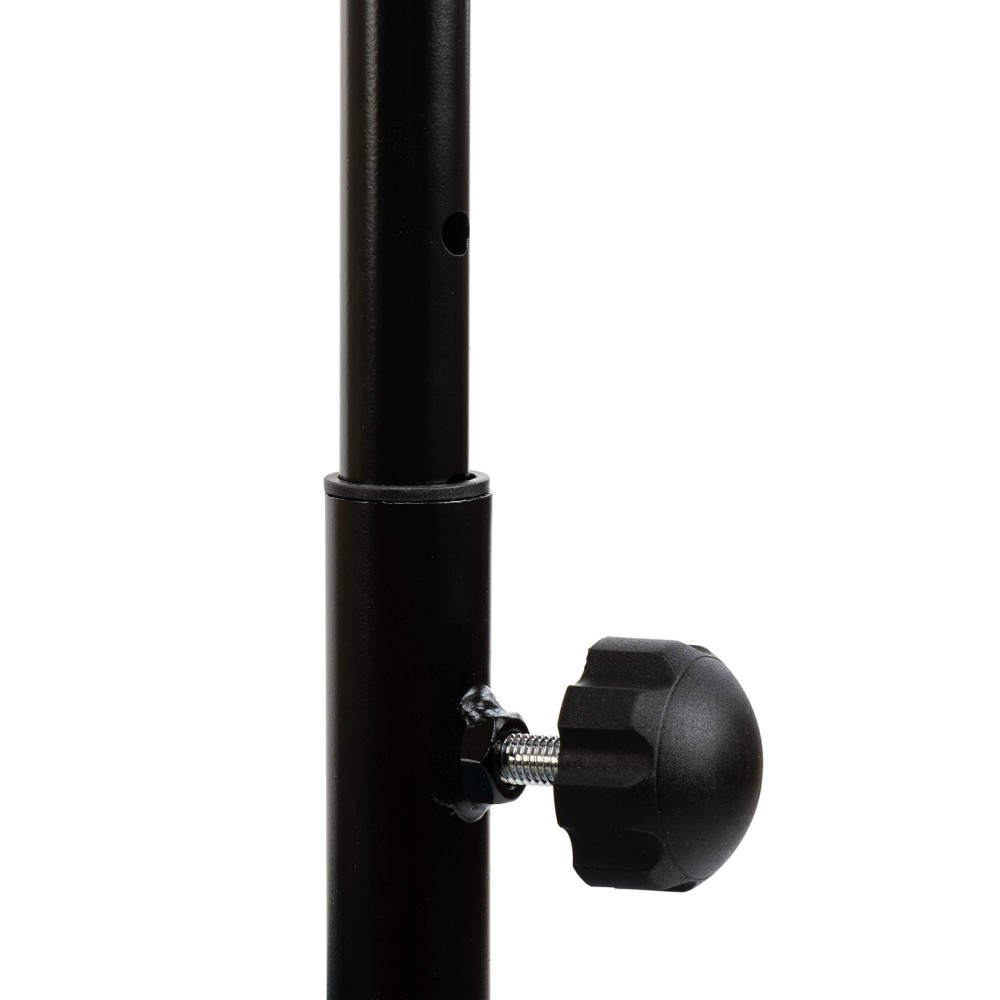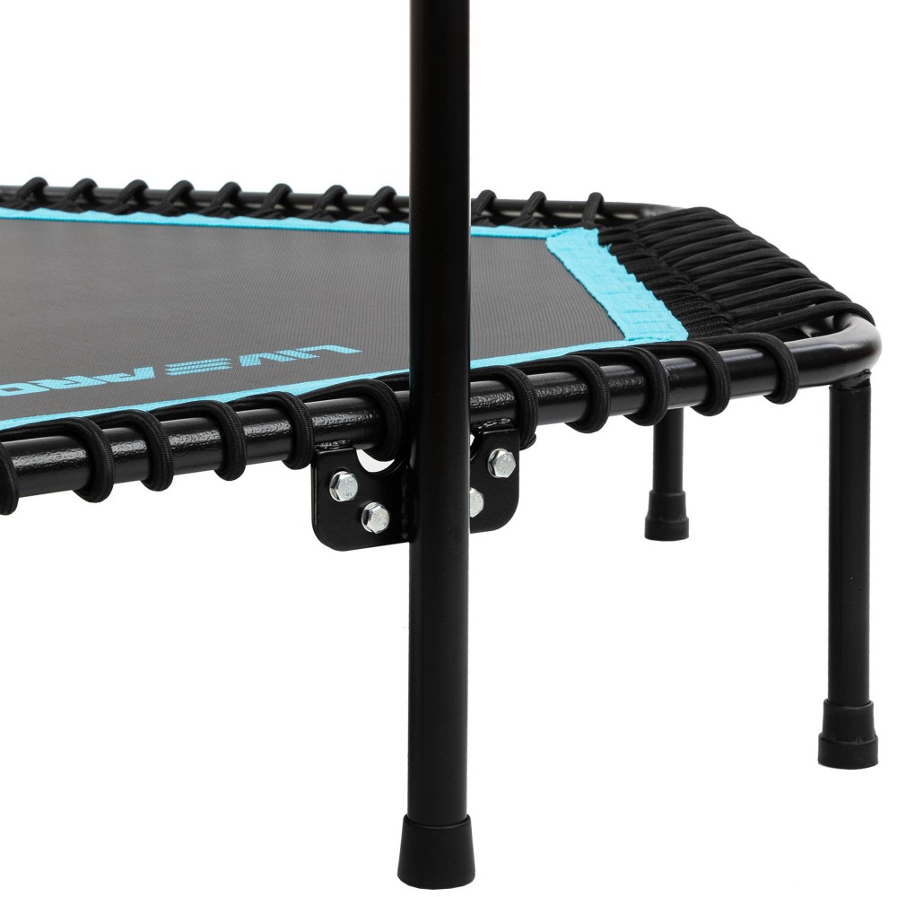 Стальные трубы, из которых изготовлена рама батута, окрашены краской для защиты от коррозии. В конструкции присутствует опорная ручка, которую можно регулировать по высоте. Ручка позволит вам удерживать баланс во время выполнения активной программы тренировок.