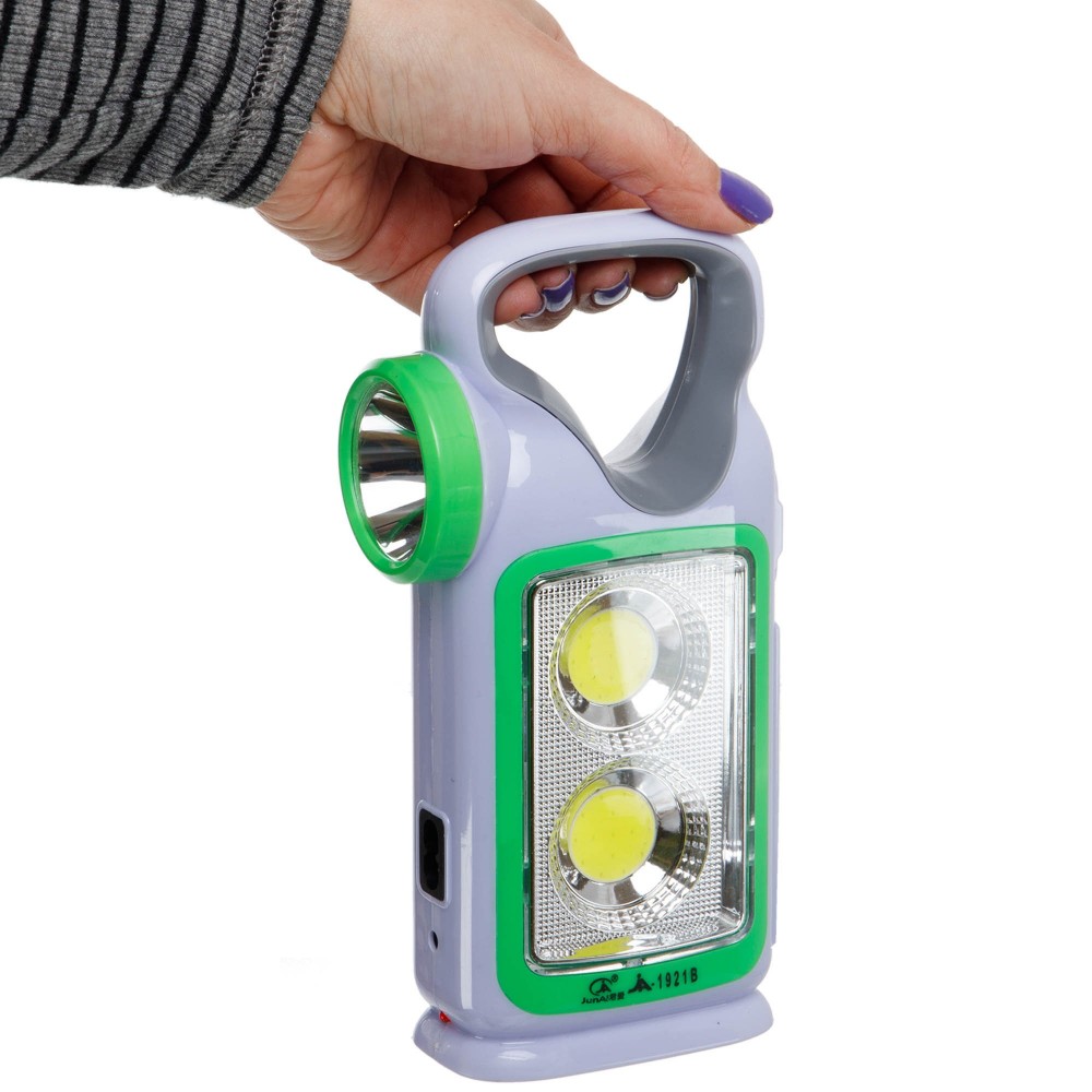 Переносной фонарь-прожектор — портативное устройство, которое обеспечивает дополнительное автономное освещение. Прибор имеет встроенный аккумулятор, однако он совместим с батарейками типа АА. Если аккумулятор разрядится, то можно вставить в фонарик батарейки.