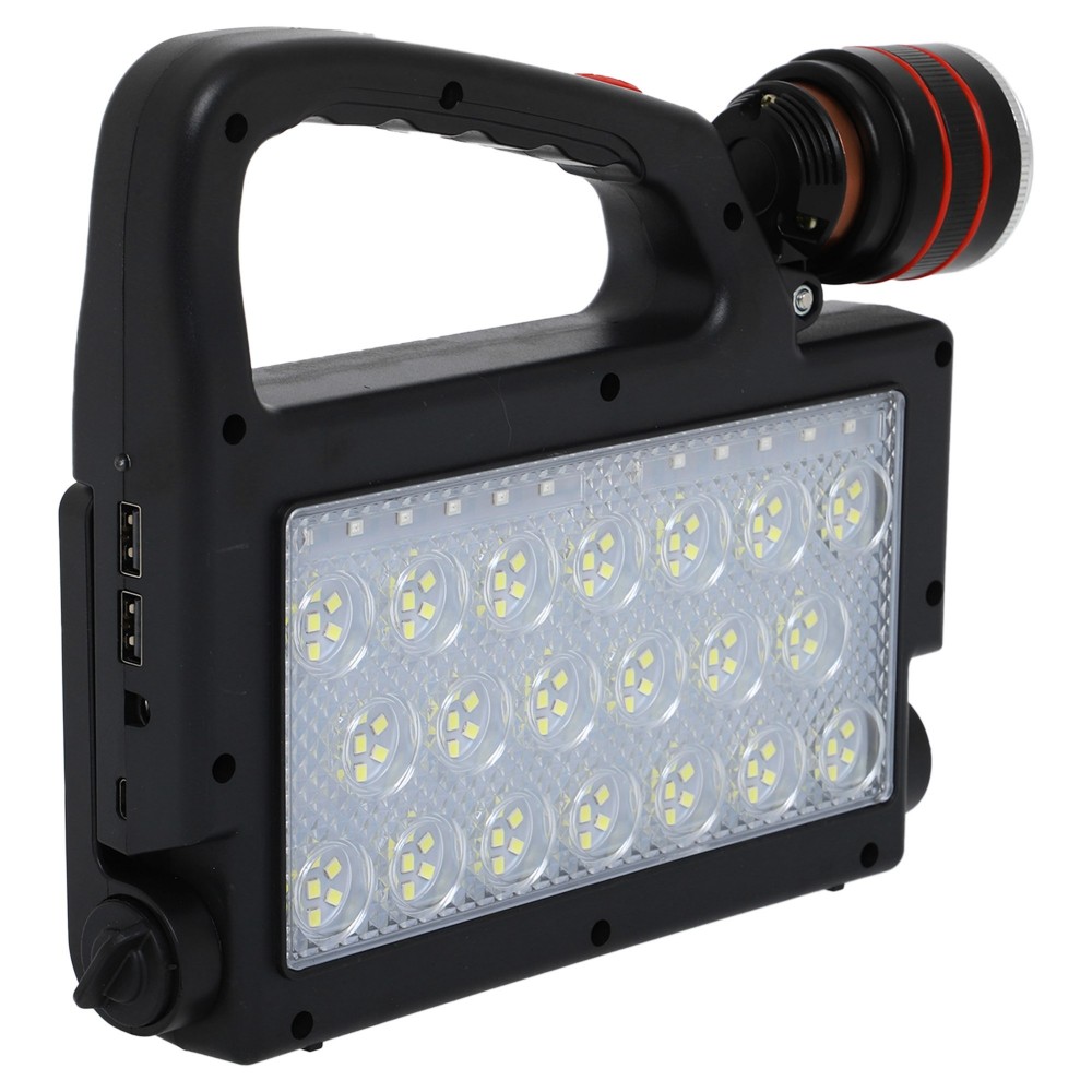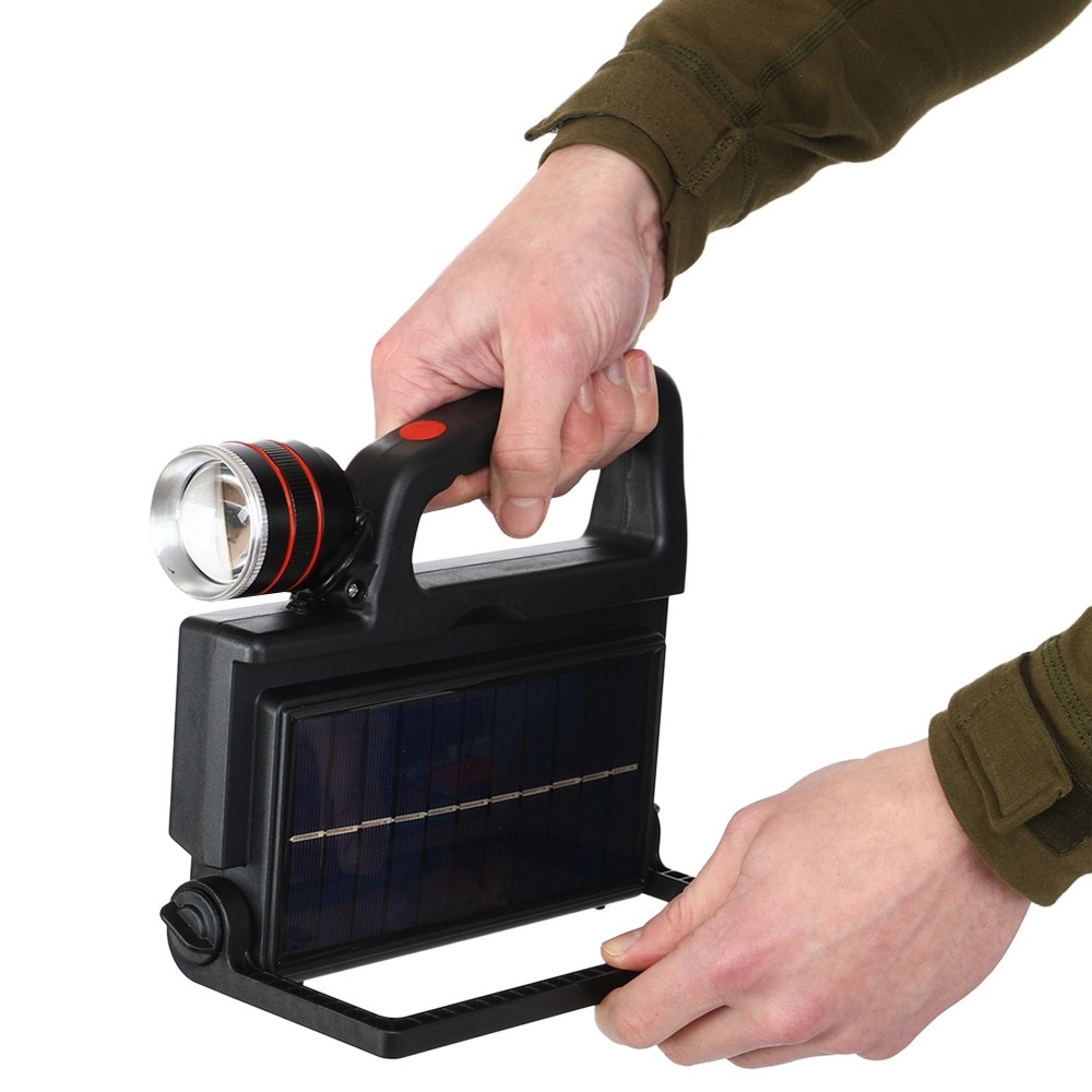 Переносной фонарь-прожектор можно использовать как автономный источник света во время рыбалки, охоты, отдыха на природе или для дома. Аксессуар работает от мощного аккумулятора, который можно заряжать от сети или от встроенной солнечной батареи.