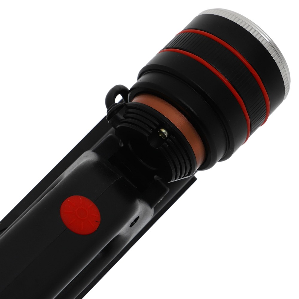 Фонарь можно использовать в качестве портативного зарядного устройства. В нем предусмотрен USB разъем для этого. Форму светового луча прожектора можно менять. Свет можно рассеивать или концентрировать в одной точке.