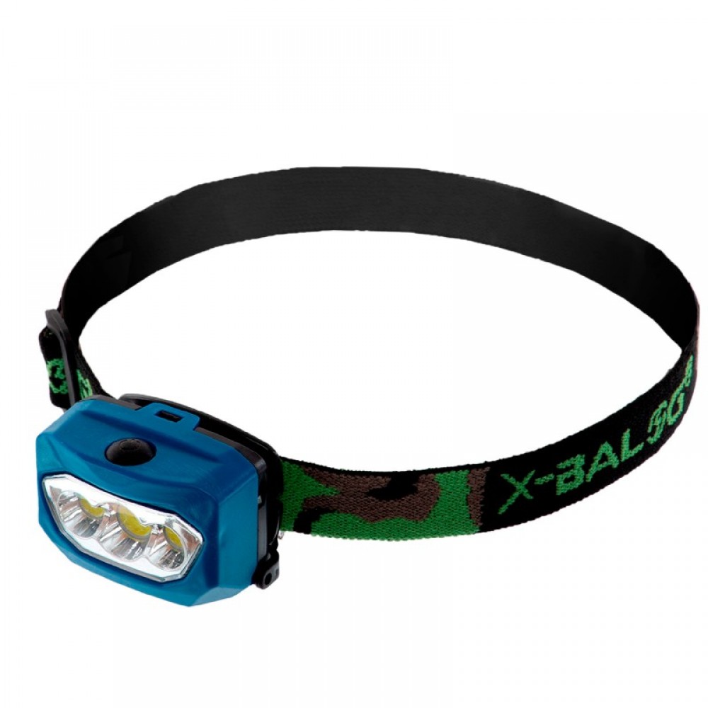 Фонарик налобный X-BALOG 933 (пластик, 3 светодиода, на батарейках (3 AAA), голубой)