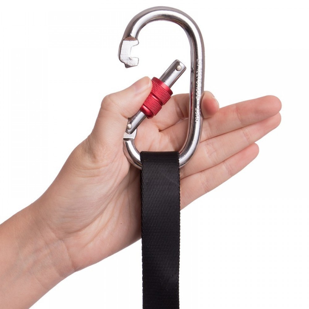 Металлические карабины с фиксаторами и прочными нейлоновыми стропами позволяют подвесить гамак к потолочным анкерам, высокому турнику, тросу, ветке дерева на нужную высоту.