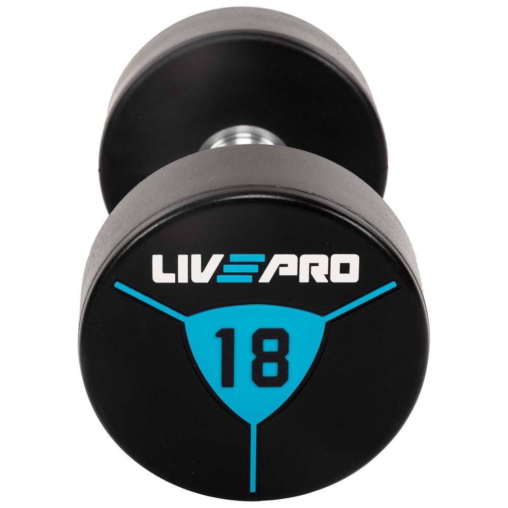 Гантели цельные профессиональные с полиуретановым покрытием LiveUp LP8000-18 2шт по 18кг черный-синий