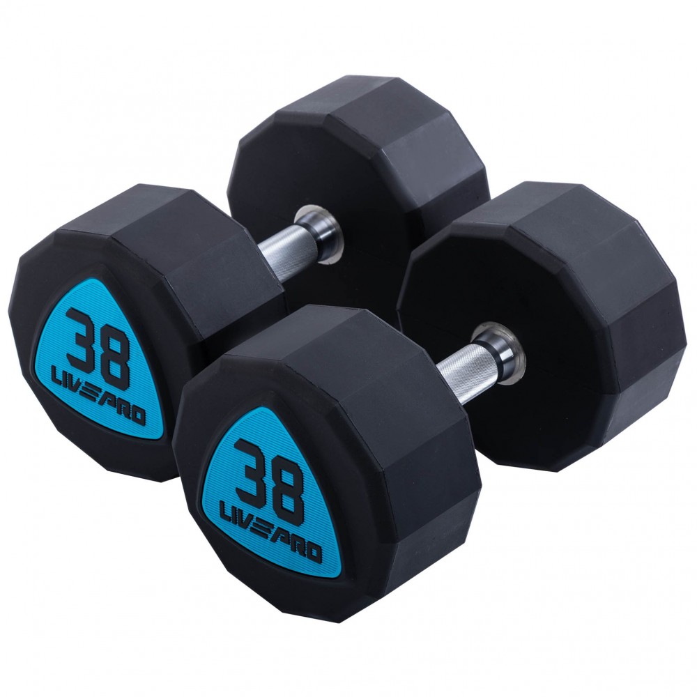 Гантели, цельные, профессиональные, полиуретановым, покрытием, LiveUp, LP8003-38, 2шт, 38кг, черный-синий