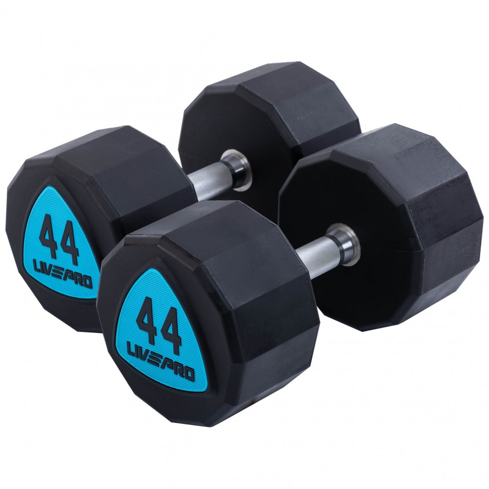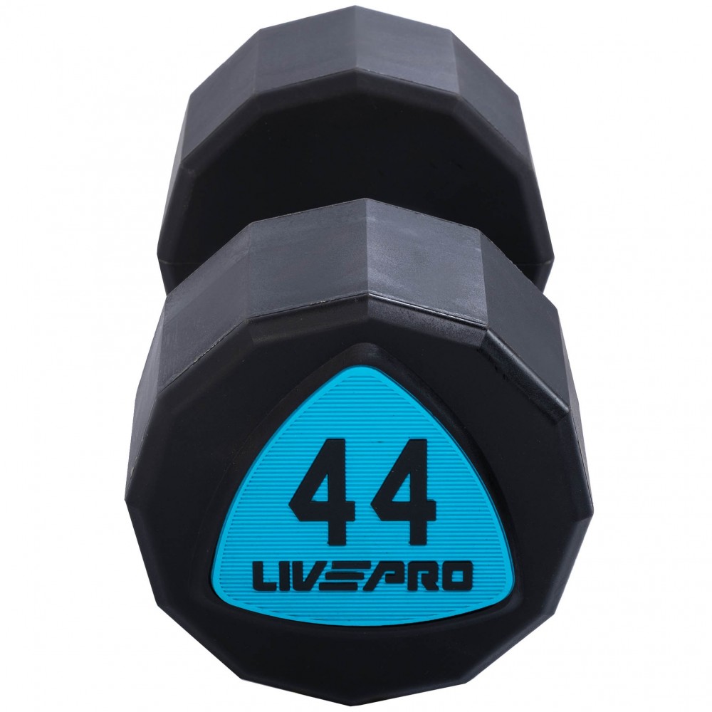 Гантели, цельные, профессиональные, полиуретановым, покрытием, LiveUp, LP8003-44, 2шт, 44кг, черный-синий