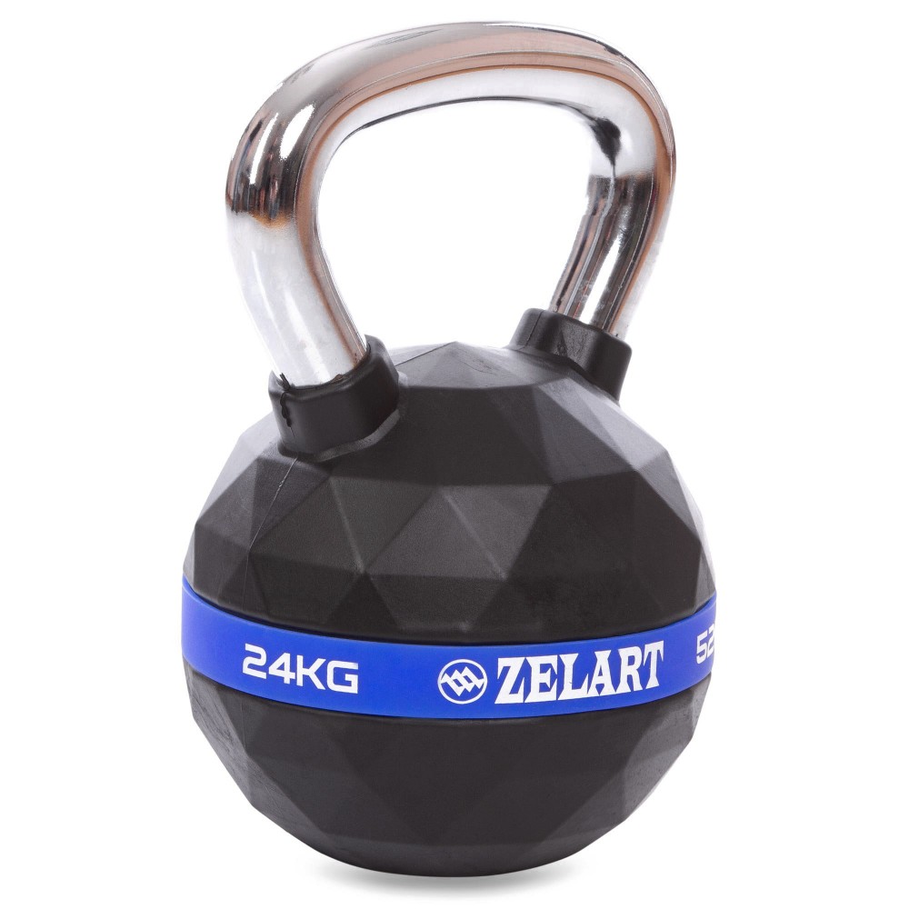 Гиря, обрезиненная, хромированной, ручкой, Zelart, FI-1973-24, вес, 24кг, черный