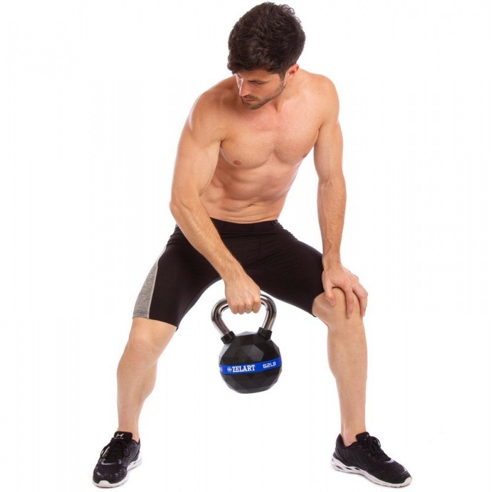 Гиря Zelart FI-1973-24 отличается уникальной формой многогранной сферы. И это не только стильный внешний вид, но и более комфортные тренировки. Снаряд подходит и для кроссфита, и для силового тренинга с весами.