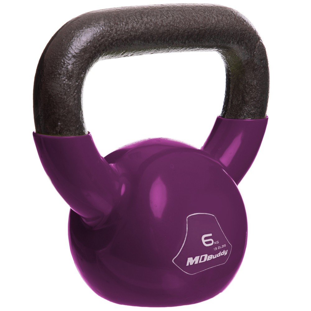 Гиря, тренировочная, цельная, чугунная, виниловым, покрытием, Zelart, TA-2680-6, вес, 6кг, Фиолетовый