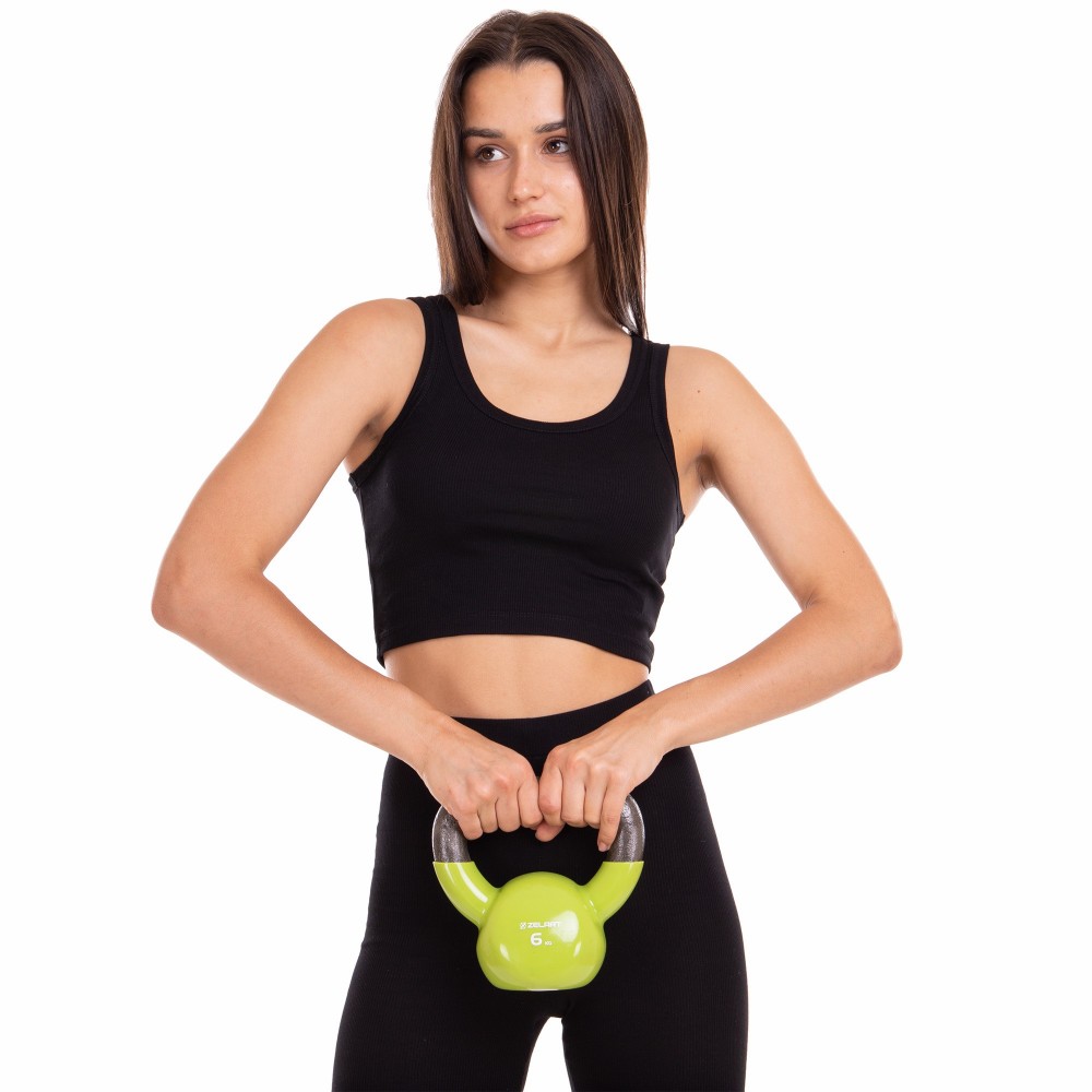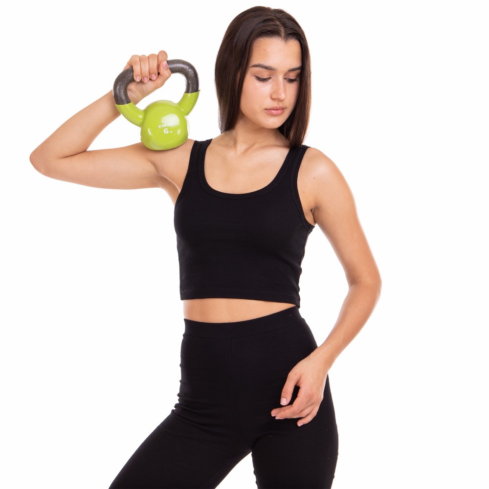 - Тело гири покрыто винилом для защиты напольного покрытия и снижения шума.
