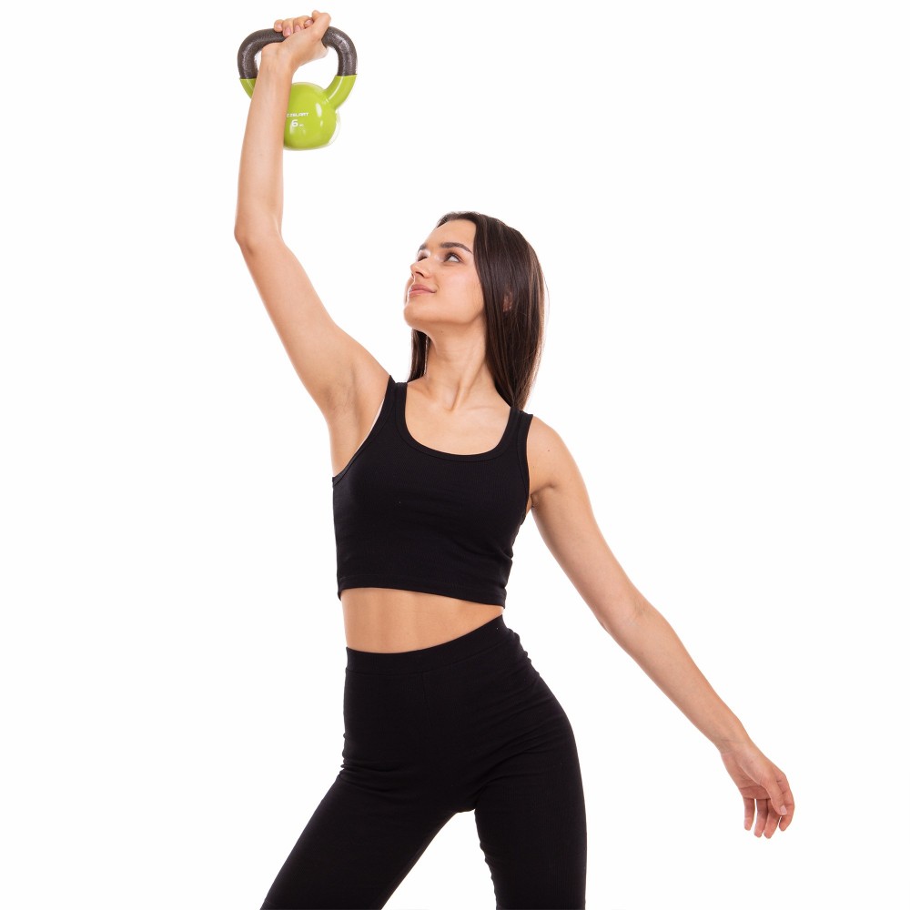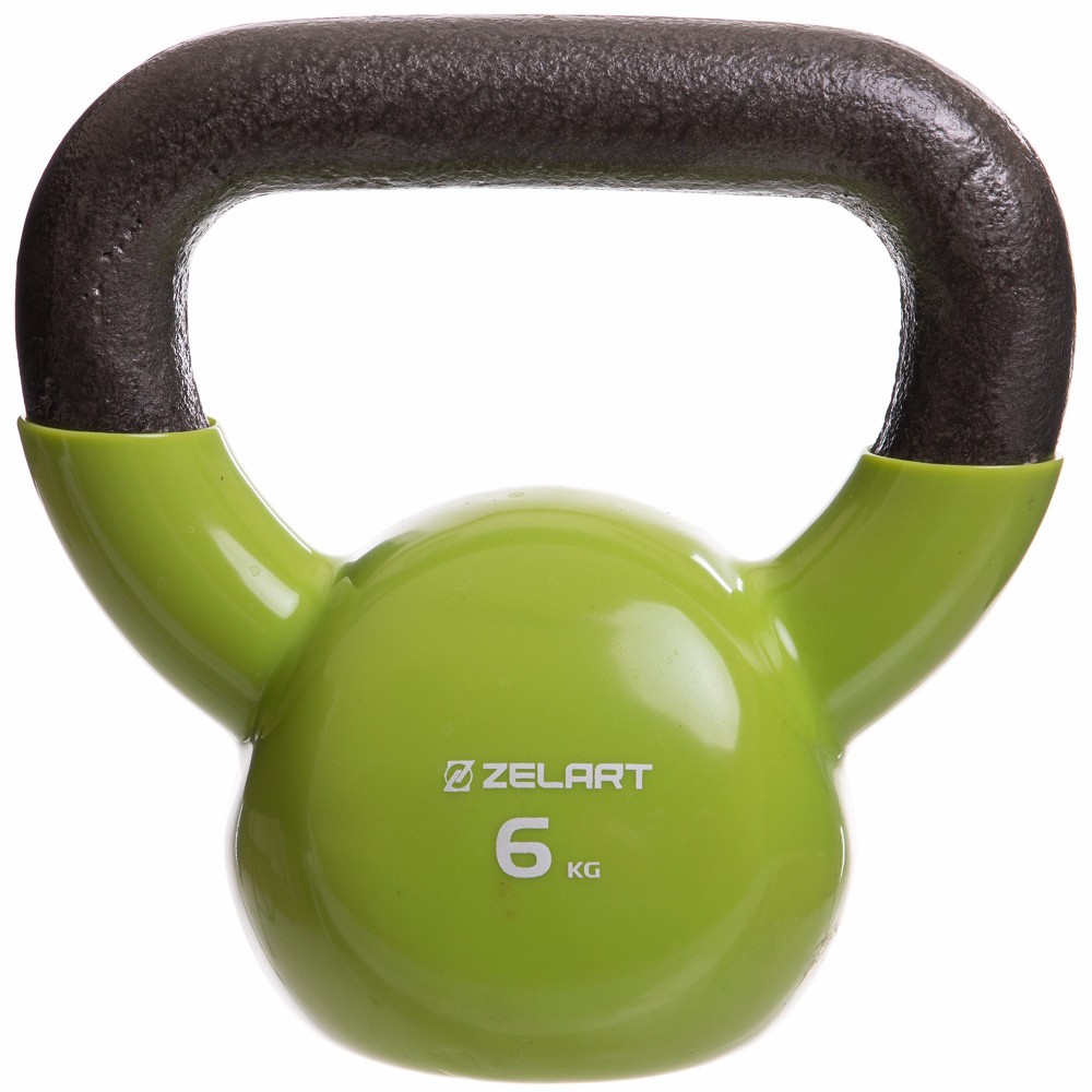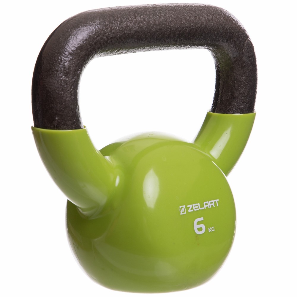 Гиря, тренировочная, цельная, чугунная, виниловым, покрытием, Zelart, TA-2680-6, вес, 6кг, Зеленый