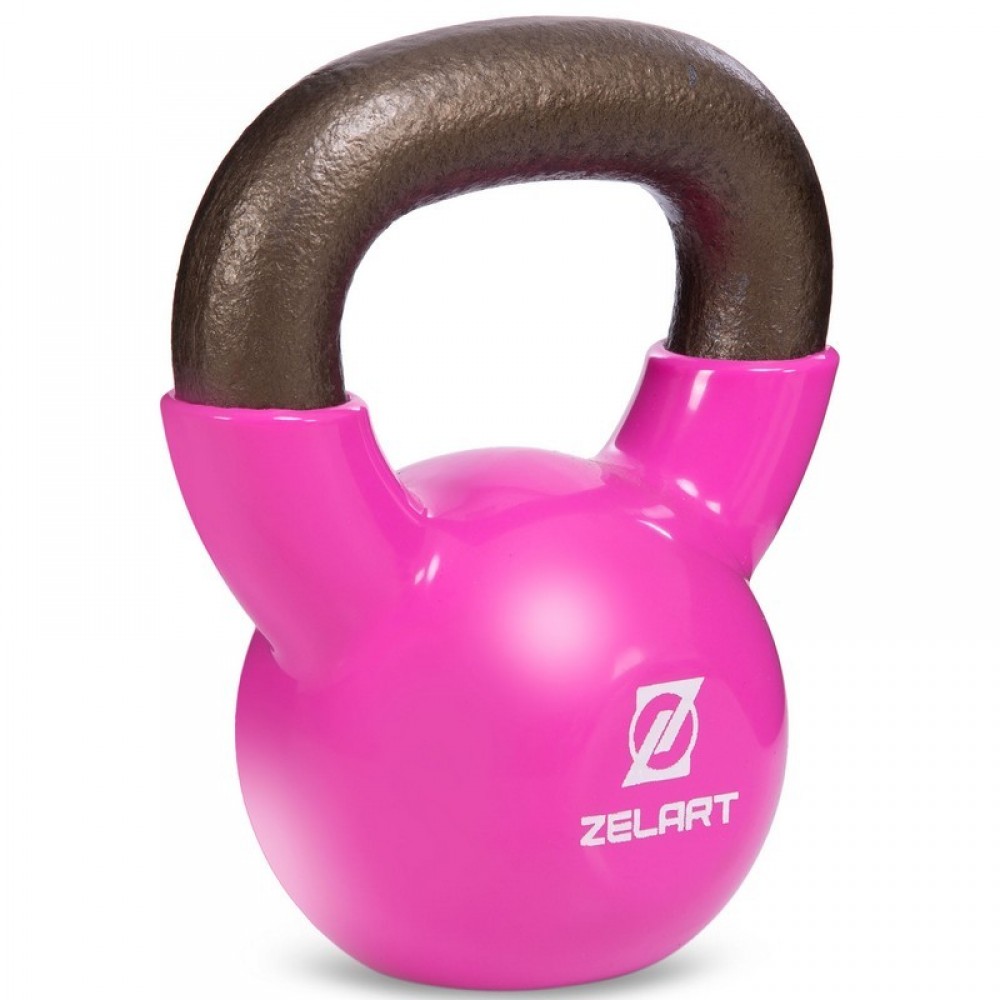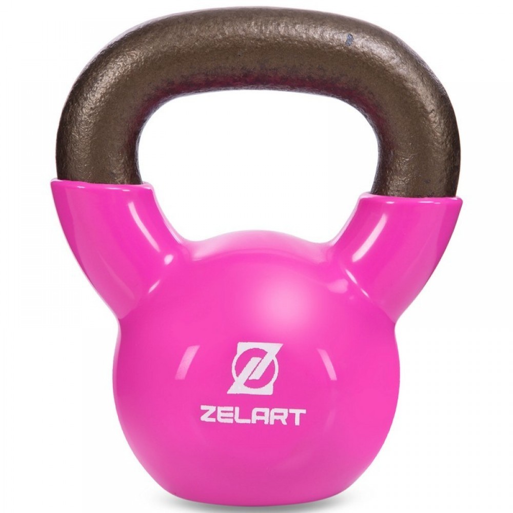 Гиря тренировочная цельная чугунная с виниловым покрытием Zelart TA-5161-8 вес 8кг синий, розовый Розовый