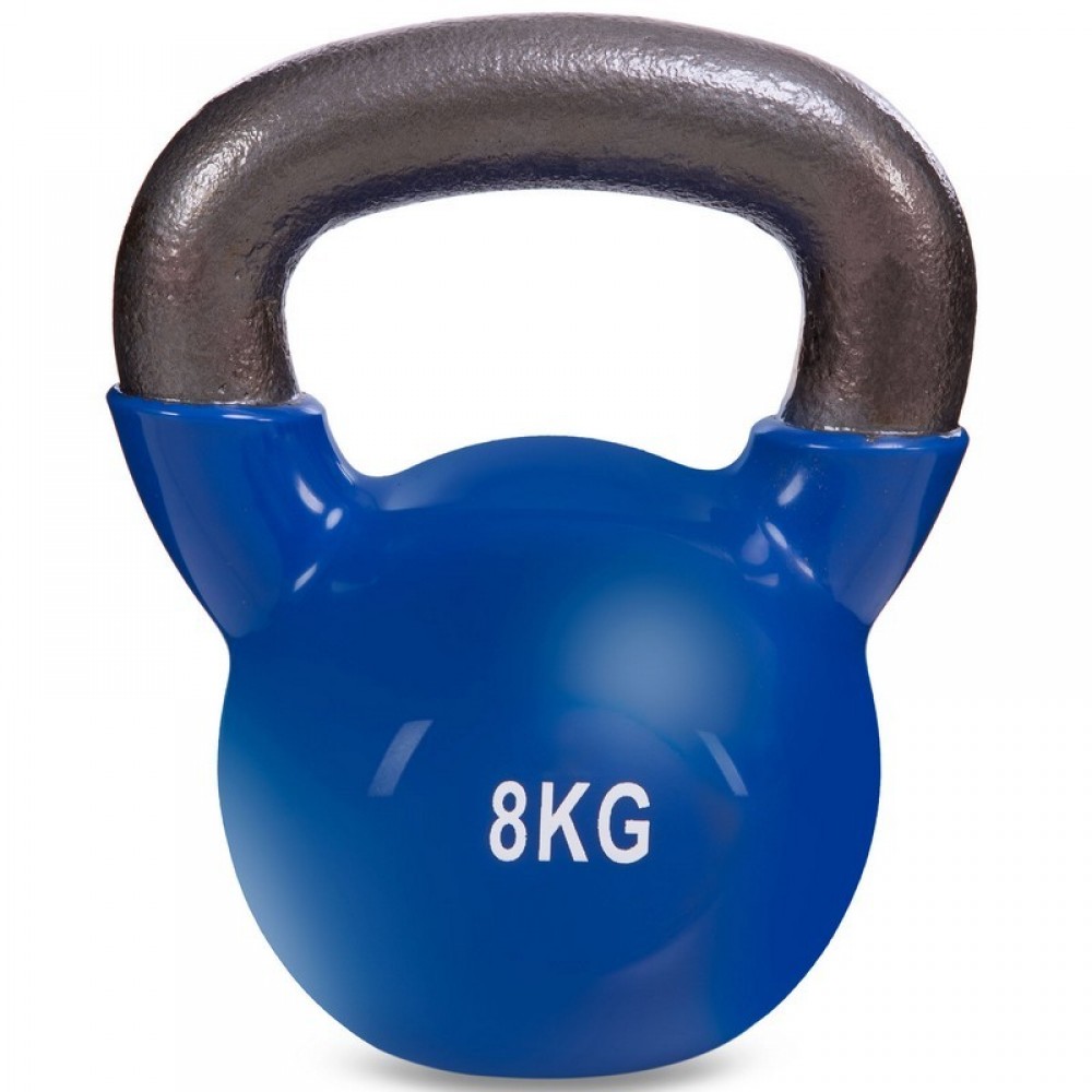 Гиря 8 кг с виниловым покрытием представляет собой многофункциональный фитнес снаряд, заниматься с которым могут спортсмены любого возраста и уровня подготовки. В процессе изготовления чугун высокого качества отливают в эталонные формы, чтобы гиря имела точные размер и вес. Удобство в использовании гири обеспечивает слой винила, покрывающий весь снаряд кроме ручки. Благодаря ему гиря не скользит и создает меньше шума во время тренировки. Виниловое покрытие защищает снаряд от сколов, и выполняет роль маркера веса. Спортсмен может с первого взгляда определить гирю нужного веса по ее цвету.