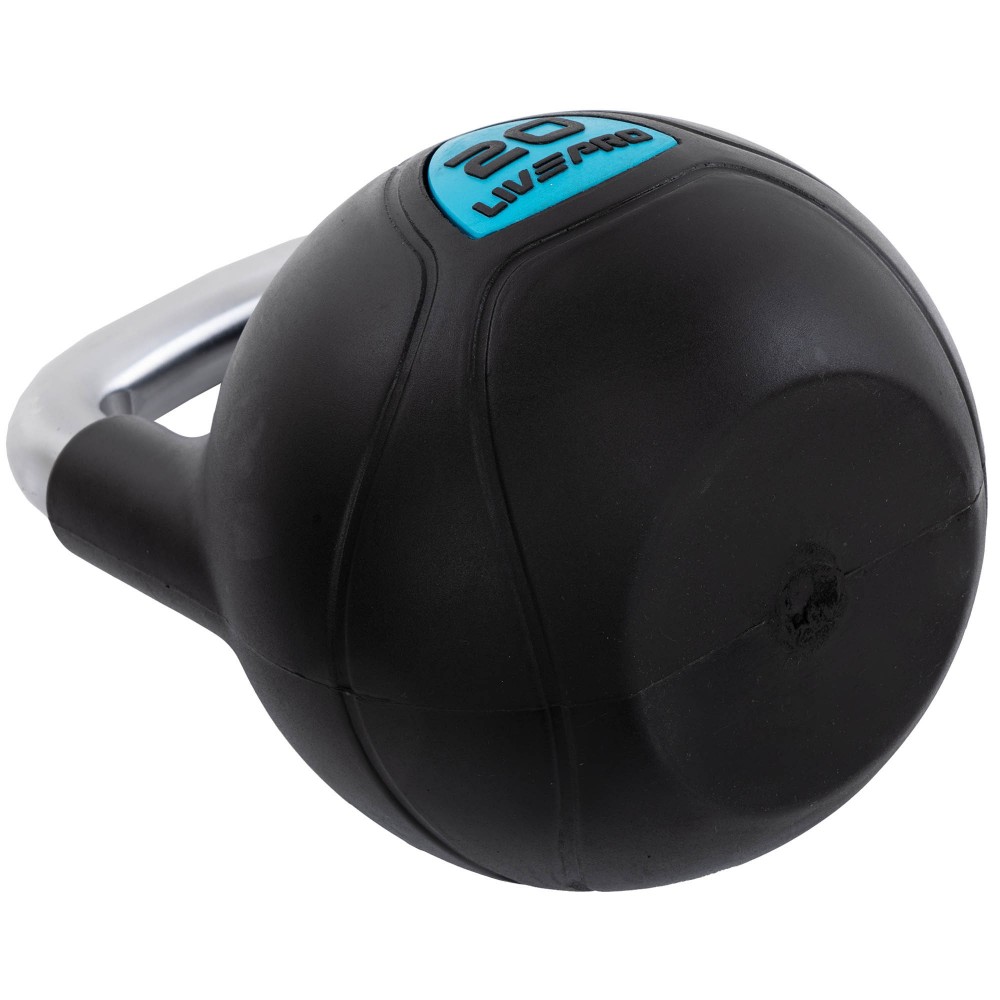 Гиря, цельная, полиуретановым, покрытием, хромированной, ручкой, LiveUp, LP8040-20, вес, 20кг, черный