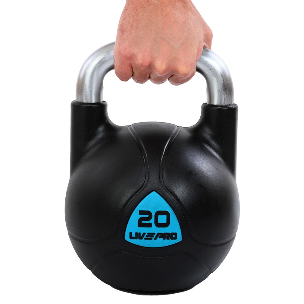 Гиря LiveUp - это профессиональный снаряд, который соответствует правилам соревнований. Гиря имеет удобную ручку стандартного размера и формы, а размер тела гири не меняется с увеличением её веса. Гиря изготовлена из стали и покрыта полиуретаном, что позволяет гораздо лучше защитить её от коррозии по сравнению с покраской. Полиуретан не отслаивается от поверхности гири и защищает её от ударов и падений на напольное покрытие. Также такая гиря не повредит покрытие пола при падении, так как полиуретан амортизирует нагрузку.