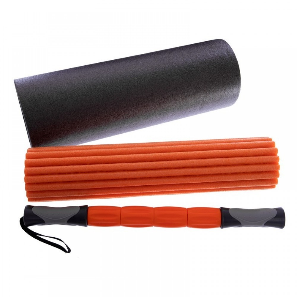 Йога, роллер, набор, 3, 1, (массажер, +, два, роллера, йоги), 45см, Zelart, FI-0271, черный-оранжевый