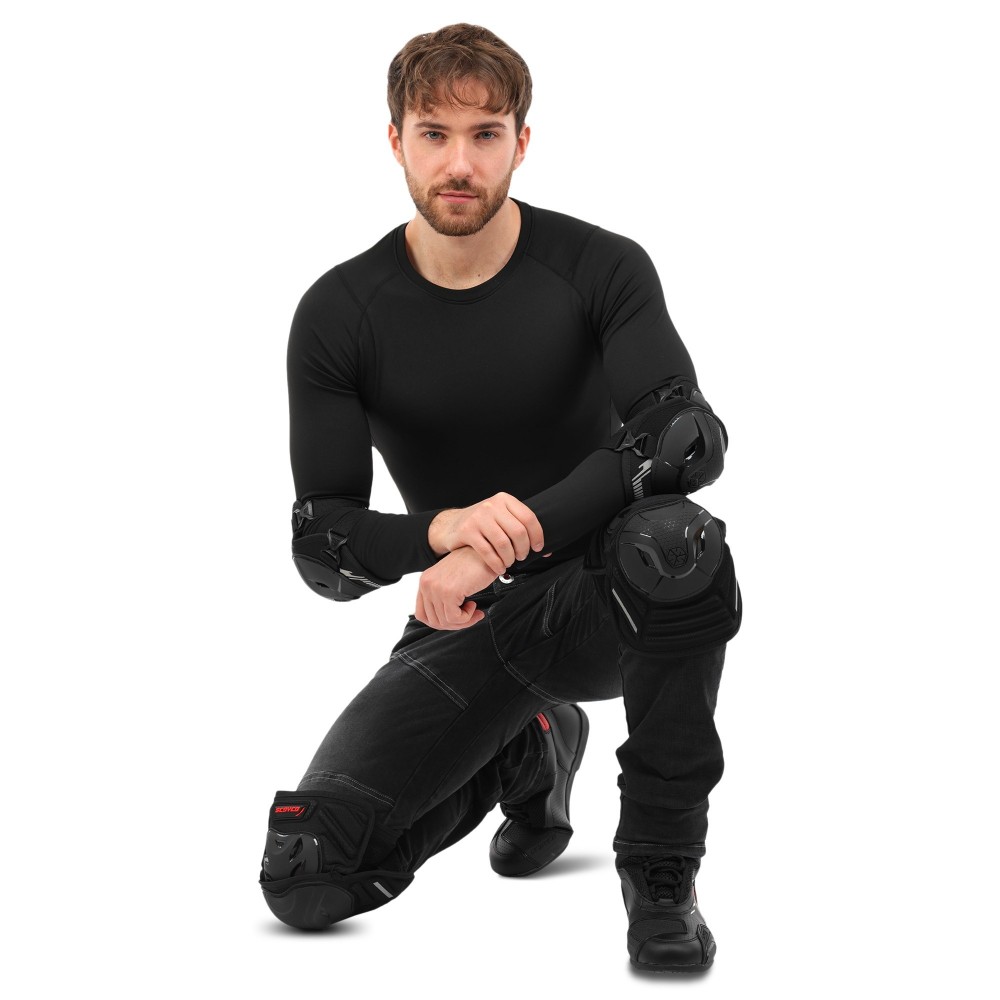 Комплект мотозащиты SCOYCOK46H46 — наколенники и налокотники высшего качества, оборудованные двойными шарнирами для максимальной свободы в каждом движении! Они удобно прилагают и надежно фиксируются, обеспечивают безопасность и комфорт в любое время года!