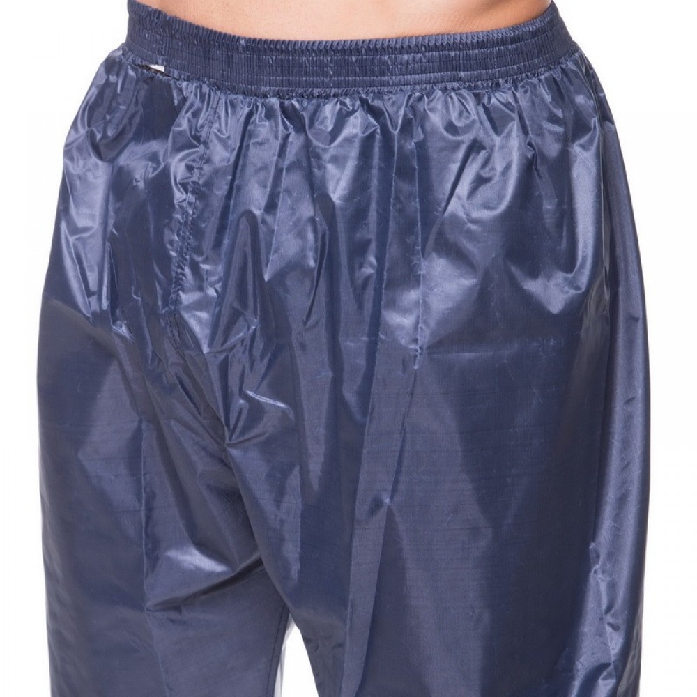 Костюм состоит из штанов и куртки, которые имеют свободный покрой. Для их изготовления используется высококачественный полиэстер (поливинилхлорид), отличающийся прочностью на разрыв и износоустойчивостью. Для максимальной сохранности тепла тела и, собственно, создания эффекта сауны все открытые части костюма – манжеты, горловина, штанины и пояс, снабжены резинкой. Благодаря этому тело спортсмена испытывает тепловое воздействие, потеет и усиленно теряет калории. При этом стоит отметить, что поддержание костюма в чистоте не составляет ни малейших проблем – можно пользоваться машинной стиркой в обычном режиме, а сохнет он невероятно быстро.