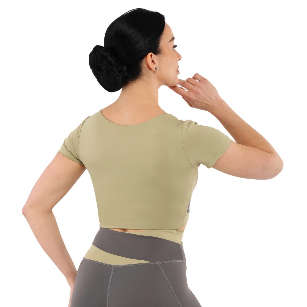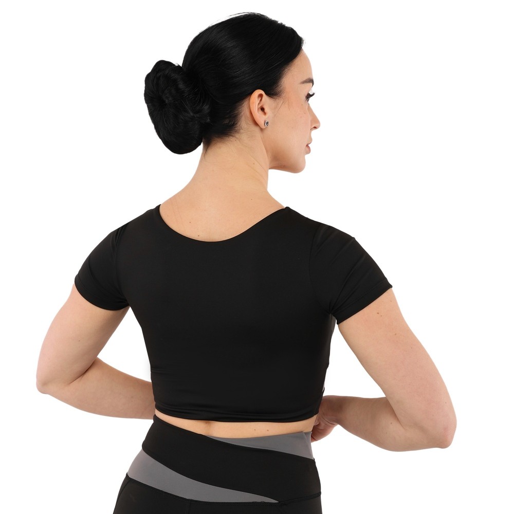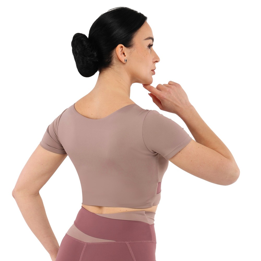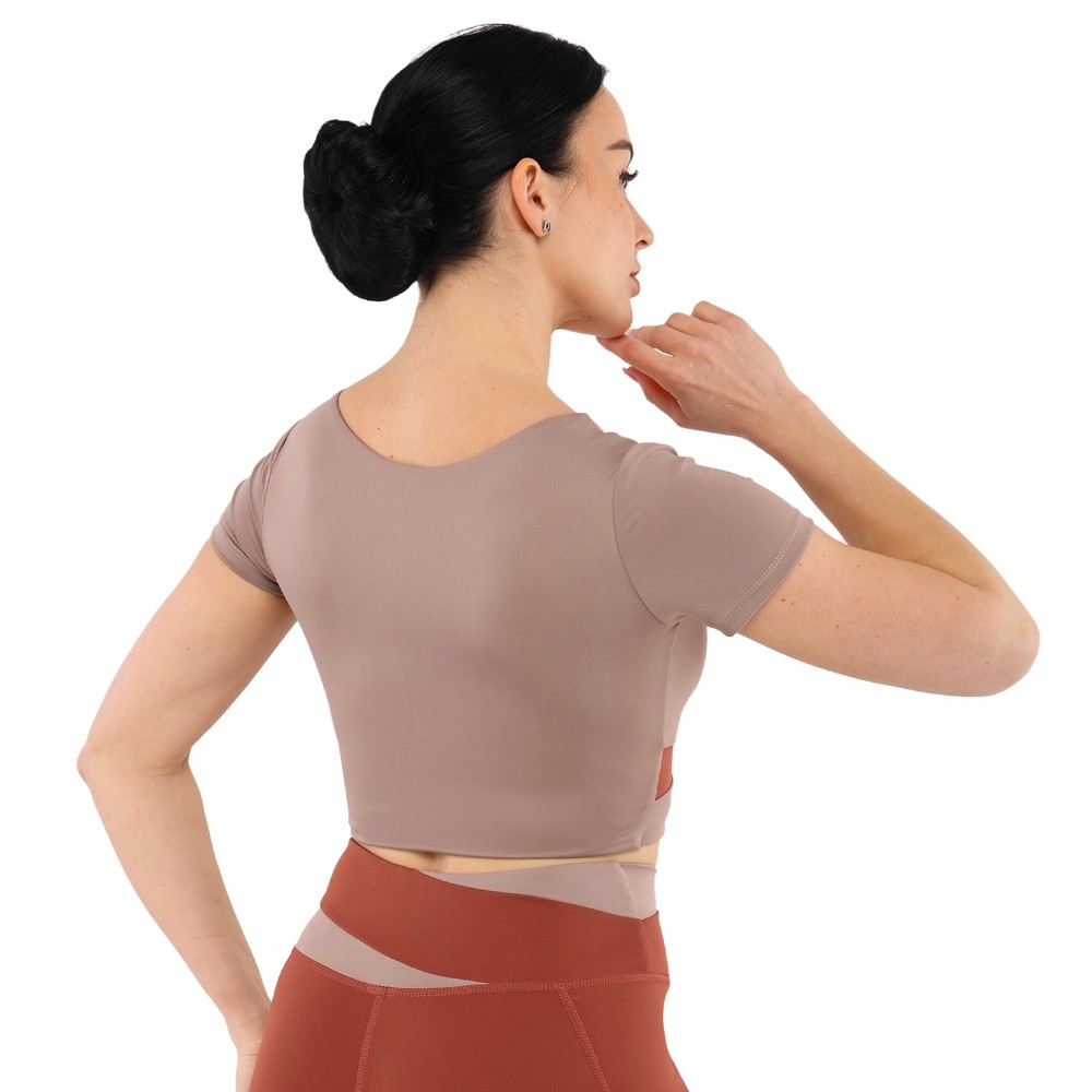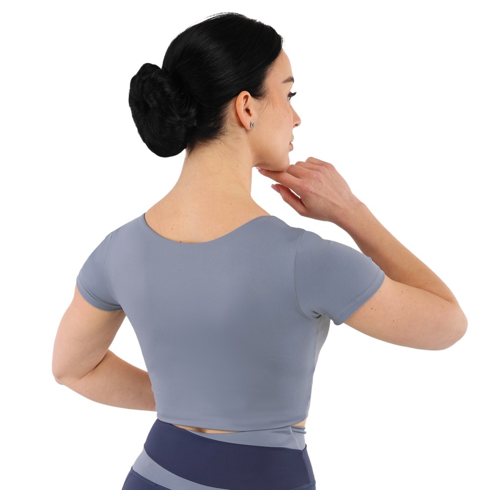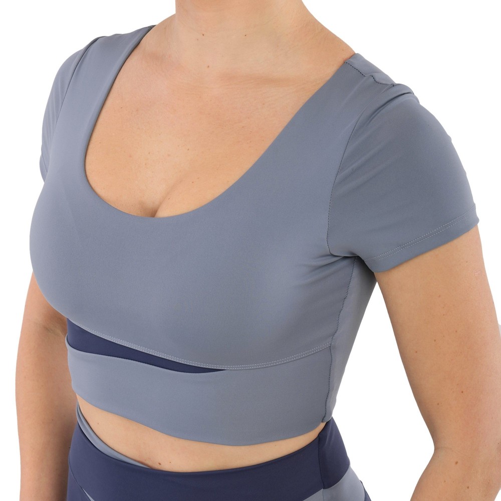 Спортивный костюм предназначен для женщин и представлен в нескольких размерах, которые отлично подходят для взрослых. Кроп-топ выполнен в виде футболки с короткими рукавами и имеет широкий вырез горловины, обеспечивая свободу движений и комфорт. Такой костюм позволит комфортно чувствовать себя во время занятий в тренажерном зале, в студии йоги или фитнеса.