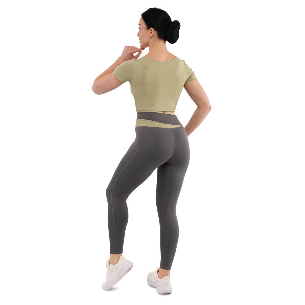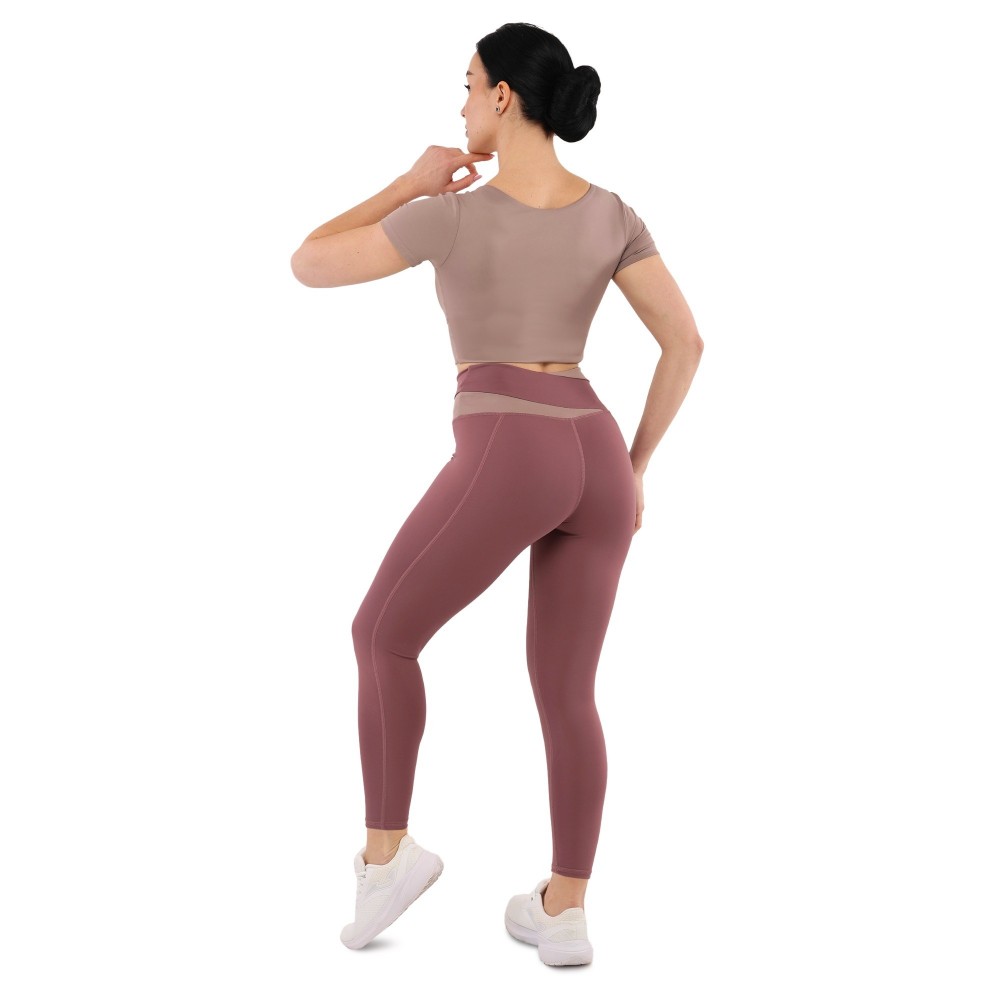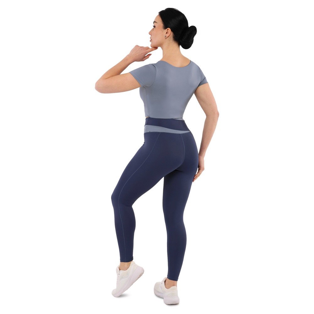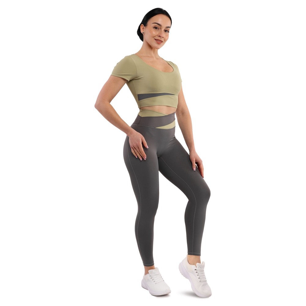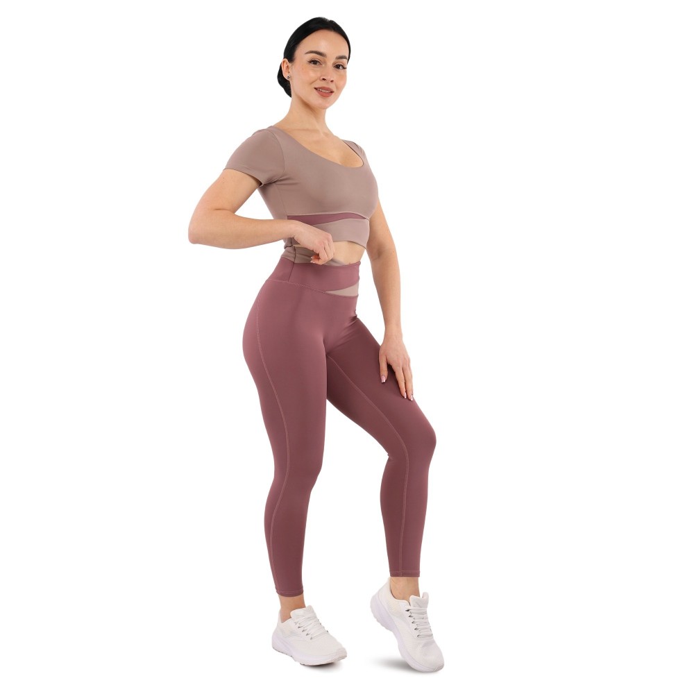 Спортивный костюм для фитнеса и тренировок включает лосины и кроп-топ. Костюм выполнен в приятных цветах и позволяет подчеркнуть женственность и красоту спортивной фигуры. В качестве материала изготовления используется ткань, которая содержит полиэстер и эластан. Материал не выгорает на солнце и не выцветает после многократных стирок, сохраняет свою эластичность и размер на протяжении всего срока службы. Высокая талия позволяет сделать образ более привлекательным и скрыть недостатки фигуры. Костюм имеет облегающую посадку и отлично тянется во всех направлениях. Это позволяет получить максимальную подвижность во время выполнения упражнений на верхнюю и нижнюю части тела. Плоские швы помогают избегать натирания кожи.