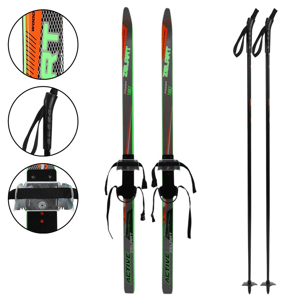 Лыжи, беговые, подростковые, комплекте, палками, Zelart, SK-0881-130B, Черный-салатовый-оранжевый