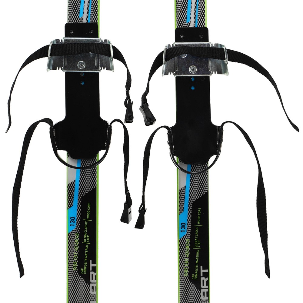 Лыжи оснащены удобными креплениями для ног. Они не только соединяют конструкции с обувью, но и увеличивают энергию отталкивания. Регулируемые ремни подходят для разных видов обуви.