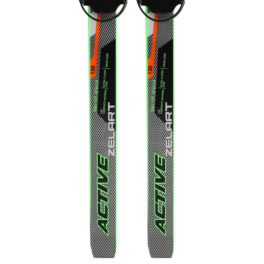 Лыжи беговые подростковые в комплекте с палками Zelart SK-0881-130B Черный-салатовый-оранжевый