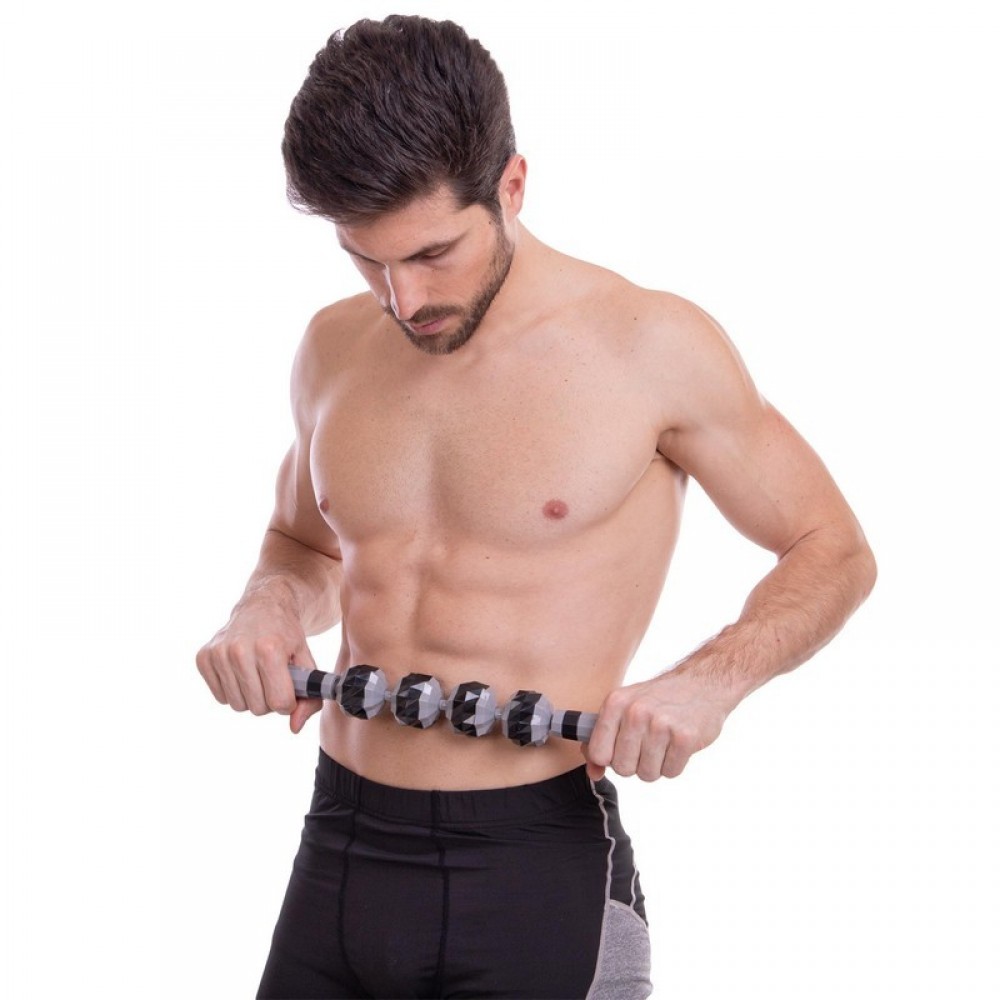 Массажер-палку можно использовать для массажа любых частей тела. Аксессуар стимулирует кроток в тканях и расслабляет мышцы благодаря 4 роликам. Ролики вращаются вокруг свой оси.