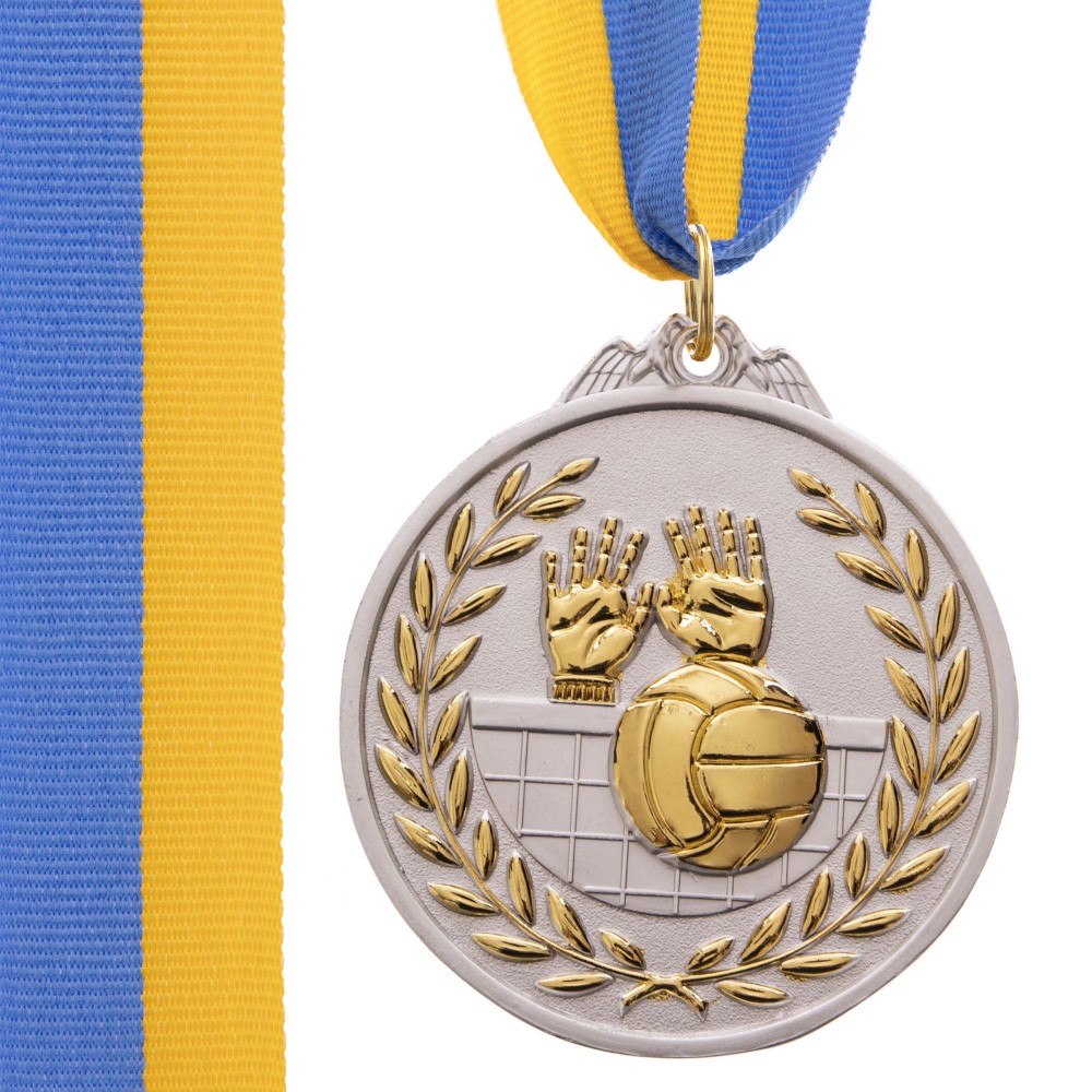 Медаль спортивная с лентой двухцветная тематическая SP-Sport Волейбол C-4850 ø6,5см золото, серебро, бронза Серебряный