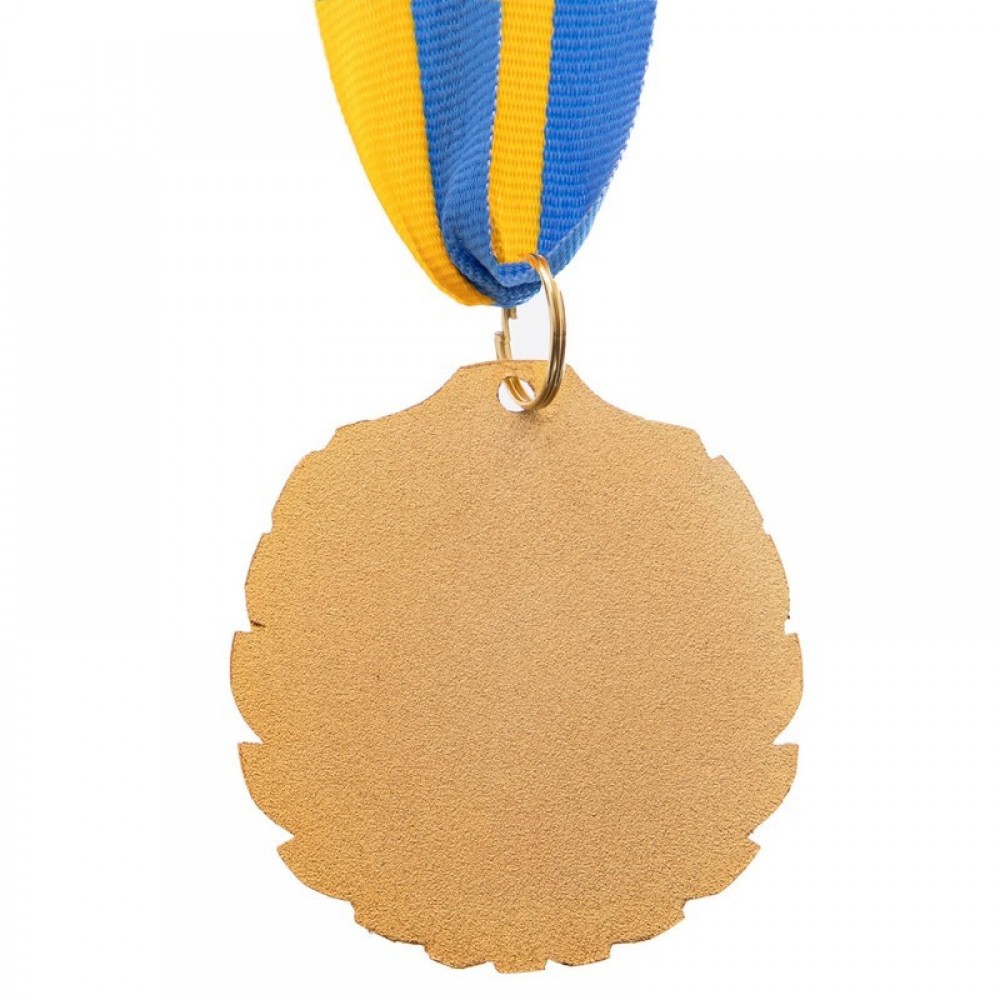 Спортивная награда изготовлена из металла и имеет диаметр 5 см. Она подойдет для любых по уровню соревнований. Медаль комплектуется ленточкой в цветах флага Украины.