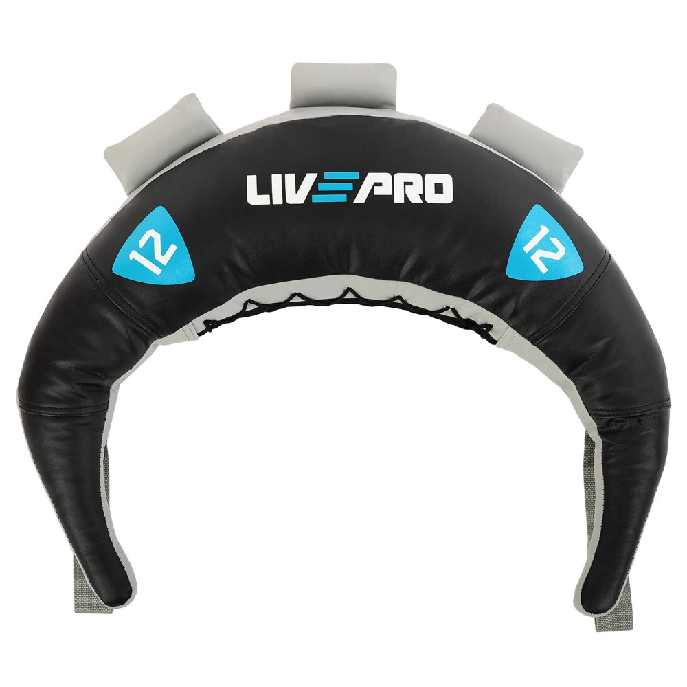 Болгарский мешок от LiveUp - простой и функциональный тренажер для кроссфита, способный заменить гири, гантели, штангу, а в некоторых упражнениях и спарринг-партнера. Мешок имеет серповидную форму, позволяющую удобно забросить его на плечи. Прочные ручки из нейлоновой стропы позволяют выполнять хват из разных положений, задействовать различные группы мышц. Для изготовления болгарского мешка используется поливинилхлорид - искусственный заменитель кожи повышенной прочности. Материал не пропускает воду, защищая наполнитель от влаги и деформаций. Внутри расположен тяжелый шарик из железного песка, обеспечивающий стабильное положение центра тяжести. Он не деформируется в процессе эксплуатации тренажера, пустое пространство заполнено наполнителем из пенного материала. Прочность мешка обеспечивают усиленные швы и стропа толщиной 3,6 см, которая опоясывает всю сумку изнутри.
