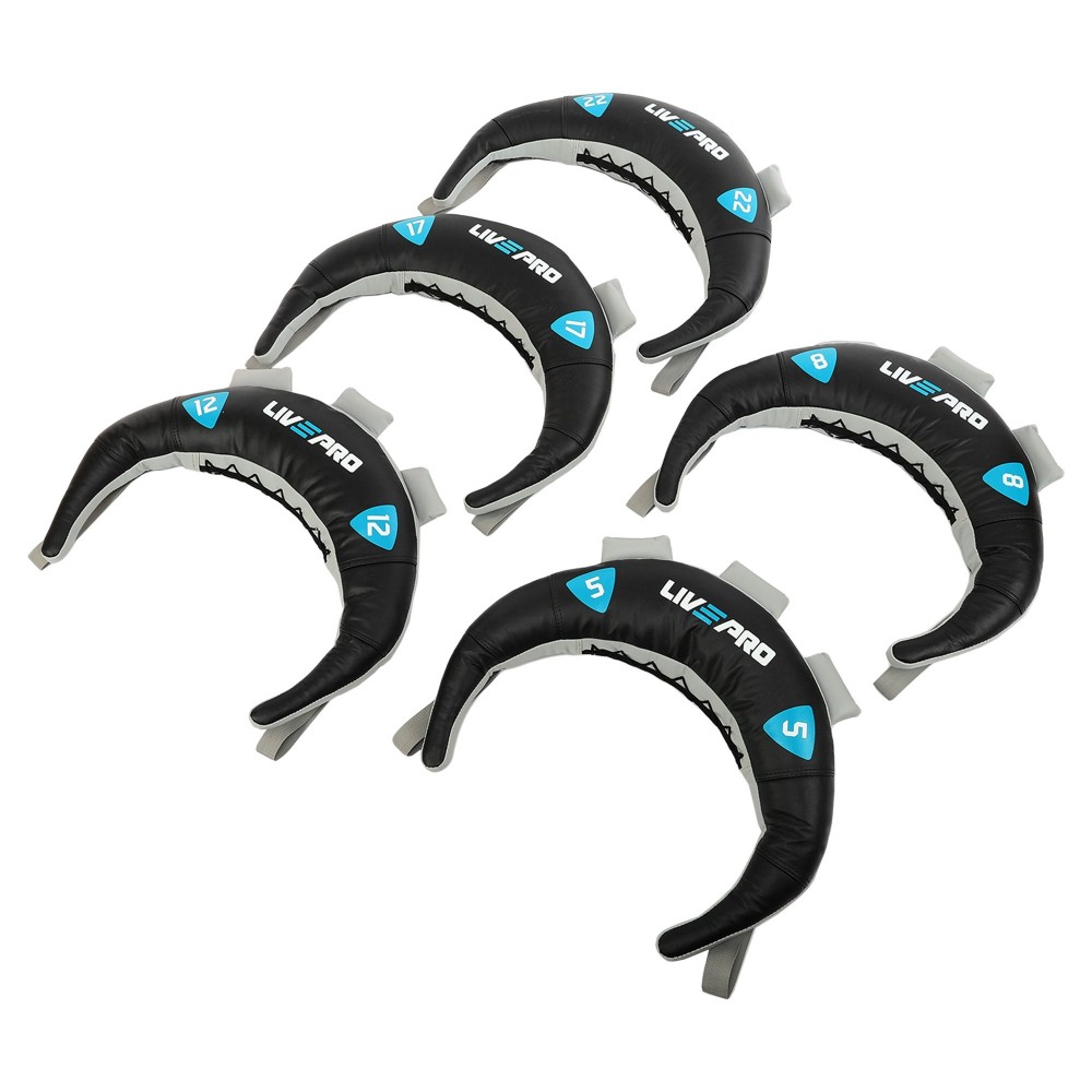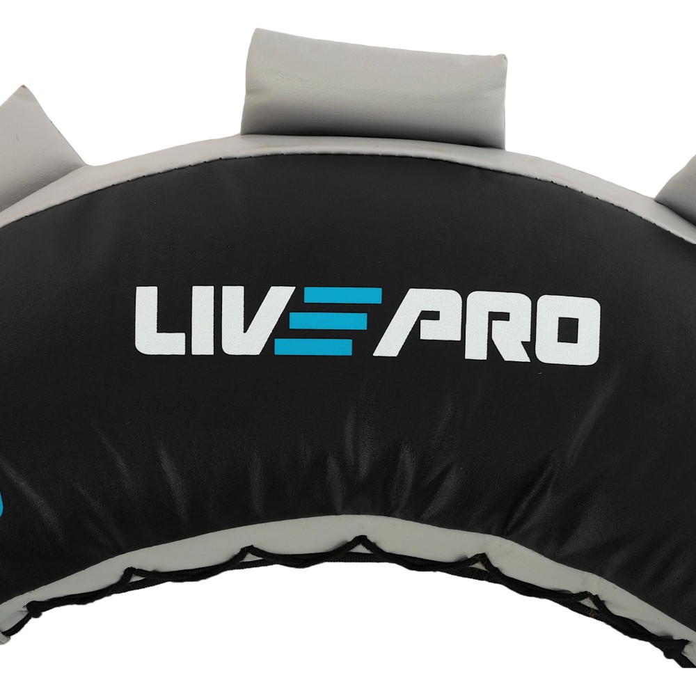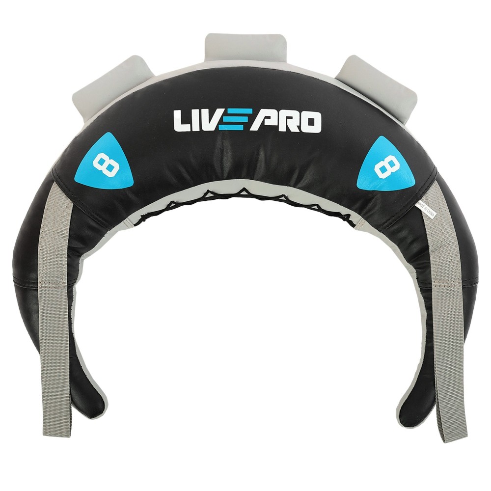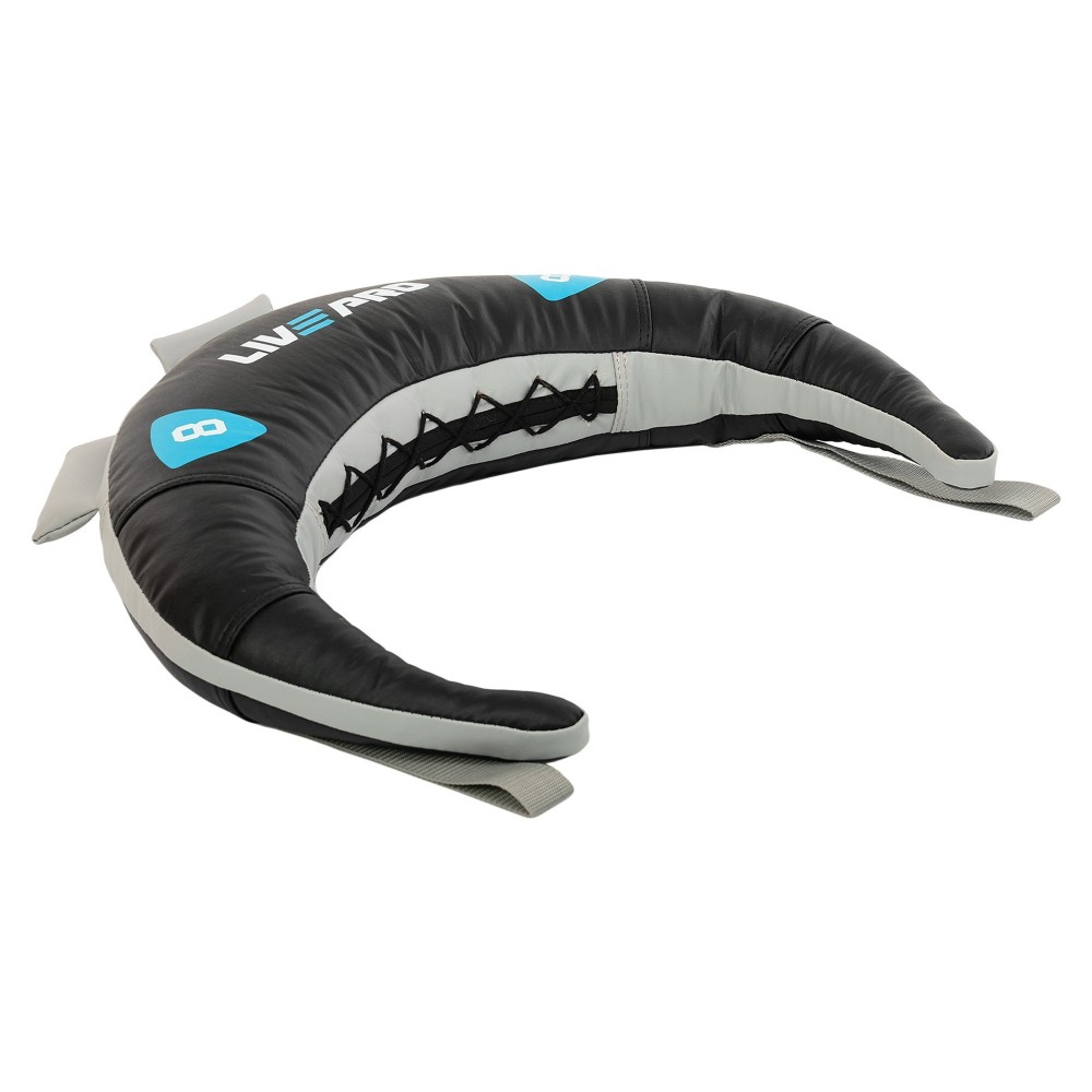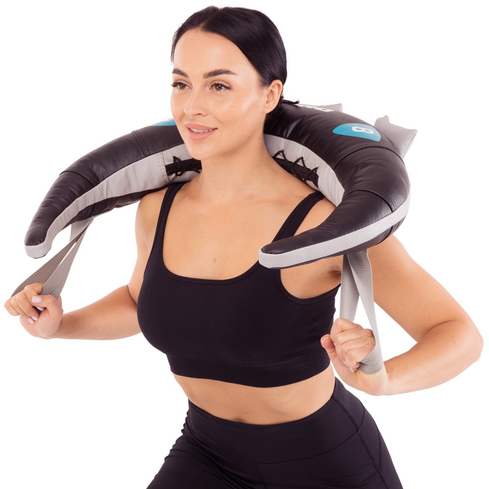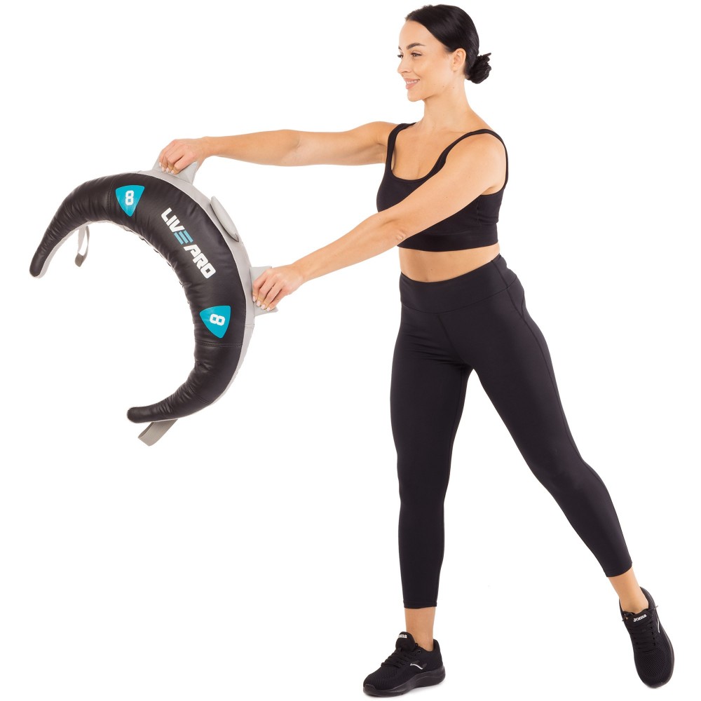 Болгарский мешок от LiveUp - простой и функциональный тренажер для кроссфита, способный заменить гири, гантели, штангу, а в некоторых упражнениях и спарринг-партнера. Мешок имеет серповидную форму, позволяющую удобно забросить его на плечи. Прочные ручки из нейлоновой стропы позволяют выполнять хват из разных положений, задействовать различные группы мышц. Для изготовления болгарского мешка используется поливинилхлорид - искусственный заменитель кожи повышенной прочности. Материал не пропускает воду, защищая наполнитель от влаги и деформаций. Внутри расположен тяжелый шарик из железного песка, обеспечивающий стабильное положение центра тяжести. Он не деформируется в процессе эксплуатации тренажера, пустое пространство заполнено наполнителем из пенного материала. Прочность мешка обеспечивают усиленные швы и стропа толщиной 3,6 см, которая опоясывает всю сумку изнутри.