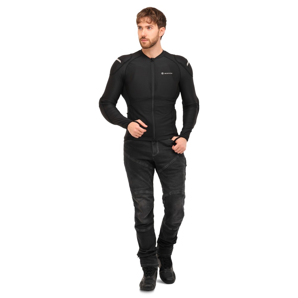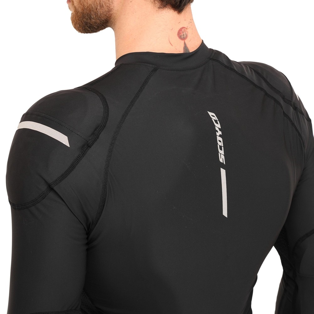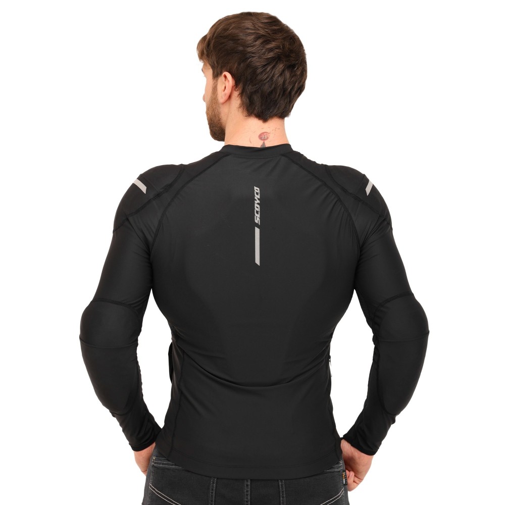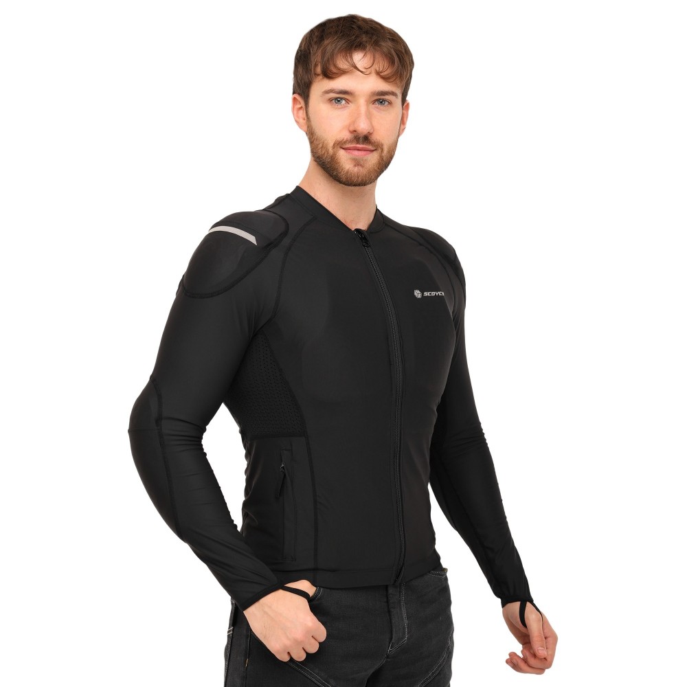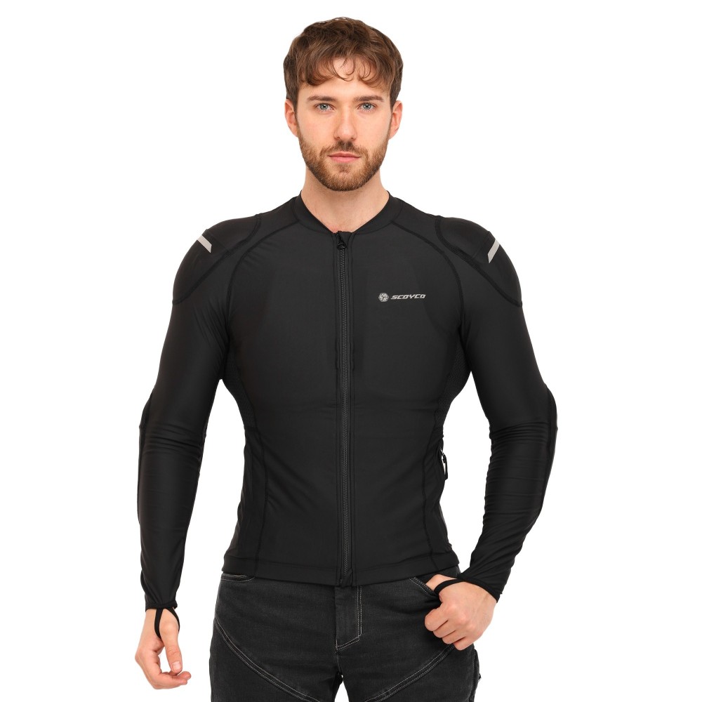 Моточерепаха компрессионная SCOYCO — это мягкая защита, специально разработанная для комфортной езды по городу и на дальние расстояния. Она изготовлена из качественной ткани, которая отлично тянется, облегает тело и не деформируется. Вставки из дышащей сетки позволяют мотоциклисту поддерживать комфортную температуру тела и сухость кожи даже в жаркую погоду. Уникальная технология 3D-кроя гарантирует удобную посадку с идеальным прилеганием в области плечей и локтей. В зонах наивысшего риска расположены защитные протекторы ESA, которые эффективно поглощают силу удара для равномерного распределения нагрузки и минимизации риска серьезных травм.