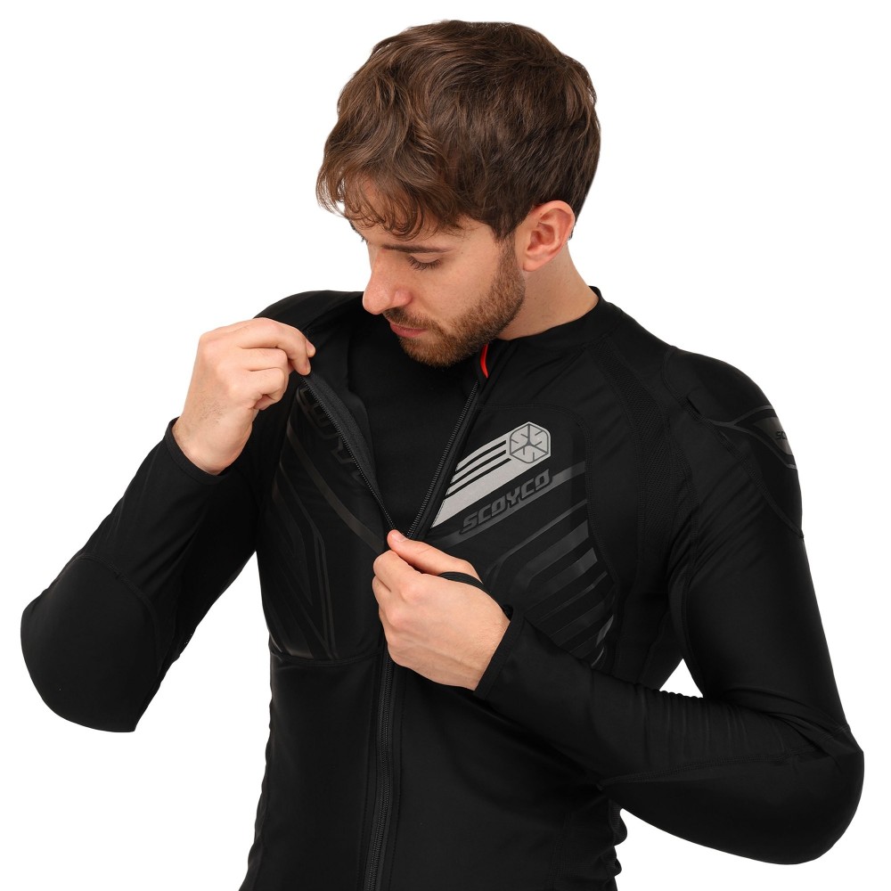 Моточерепаха компрессионная SCOYCO — это мягкая защита, специально разработанная для комфортной езды по городу и на дальние расстояния. Она изготовлена из качественной ткани, которая отлично тянется, облегает тело и не деформируется. Вставки из дышащей сетки позволяют мотоциклисту поддерживать комфортную температуру тела и сухость кожи даже в жаркую погоду. Уникальная технология 3D-кроя гарантирует удобную посадку с идеальным прилеганием в области плечей и локтей. В зонах наивысшего риска расположены защитные протекторы ESA, которые эффективно поглощают силу удара для равномерного распределения нагрузки и минимизации риска серьезных травм.