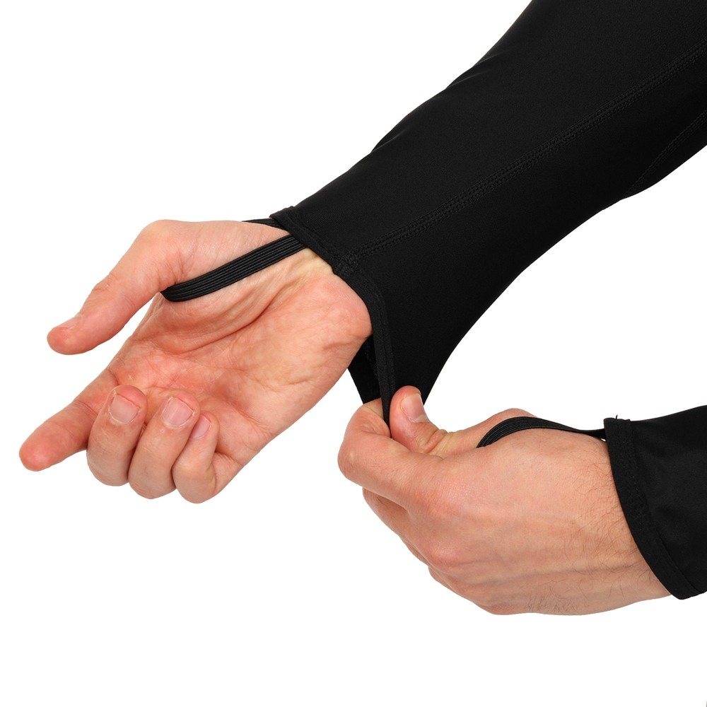 Куртка застегивается на молнию YKK, которая не заедает и служит очень долго. На воротнике добавлена защита от молнии, чтобы предотвратить дискомфорт от трения с телом во время движения. На манжетах расположены упругие петли для больших пальцев — рукава не будут сдвигаться даже при резких динамических движениях.