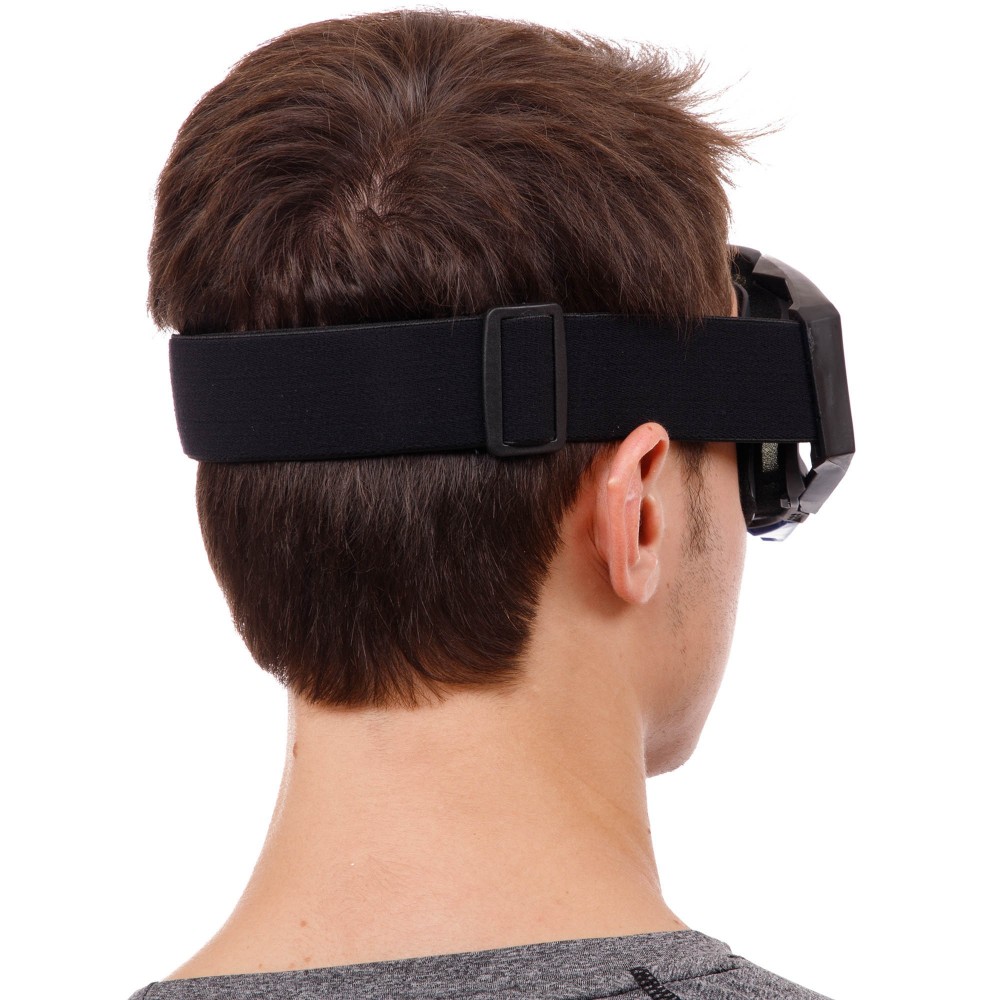 Очки закрывают только глаза. Они крепятся на голову с помощью эластичного ремня.