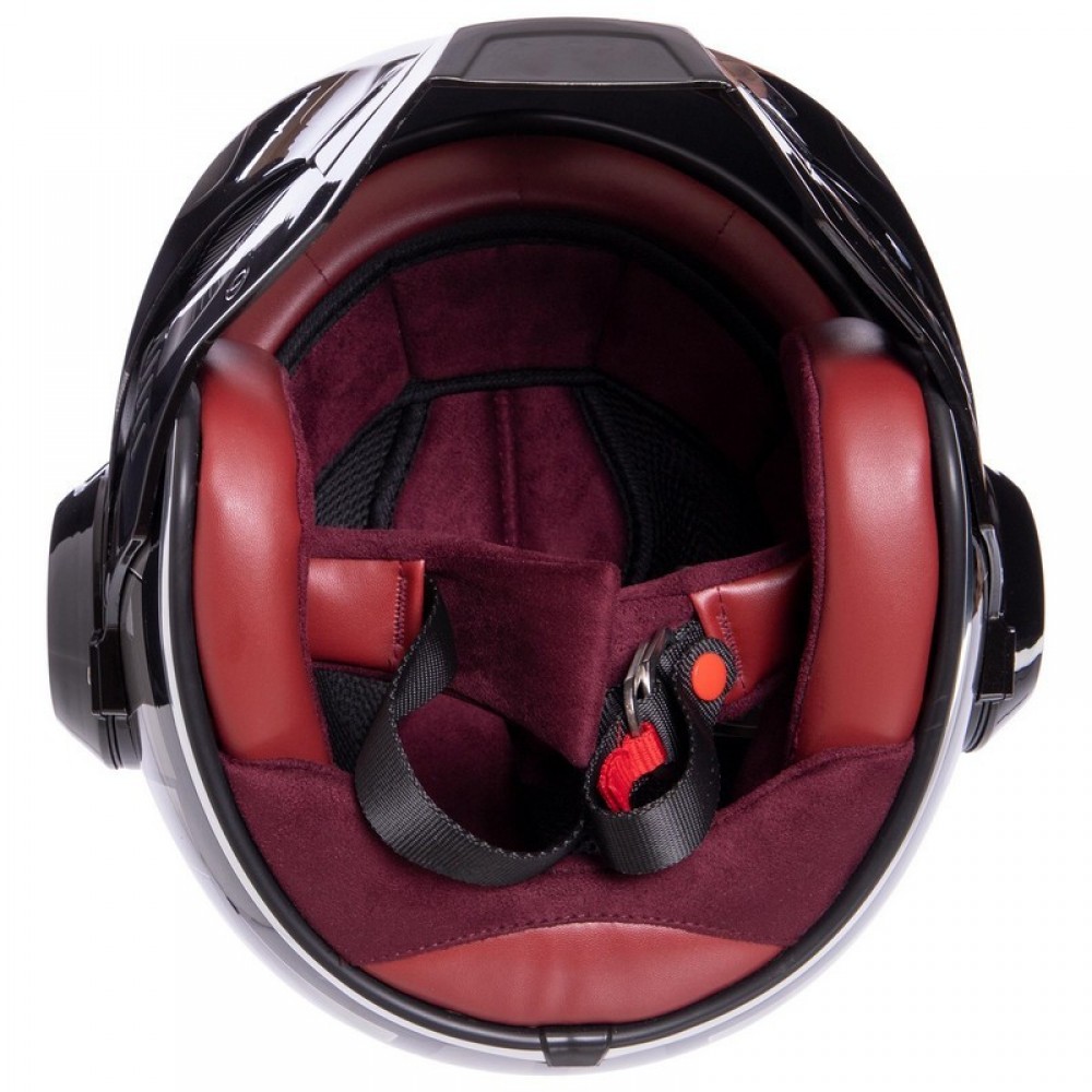 Внутри мотошлем покрыт мягким амортизирующим материалом, он снимает часть нагрузки с головы в случае падения.