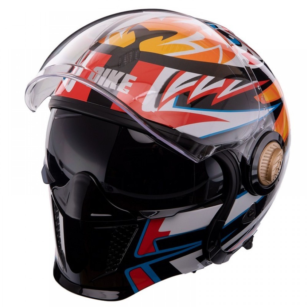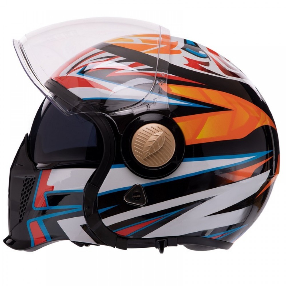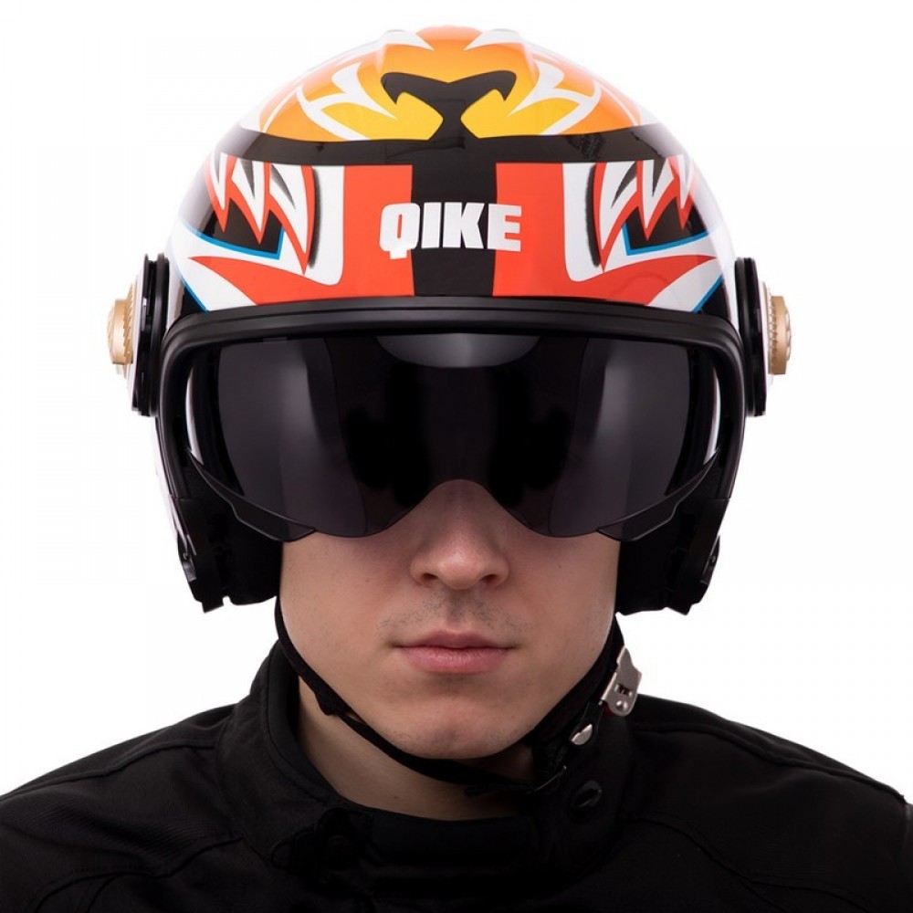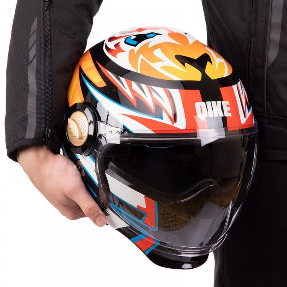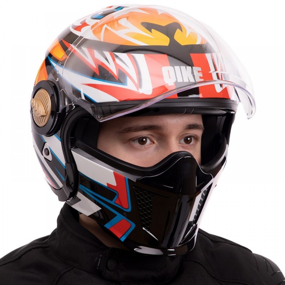 Мотошлем Трансформер QKE M-7782 M-XL черный-оранжевый-белый Черный-оранжевый-белый
