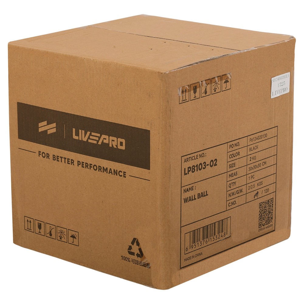Мяч набивной медицинский для кроссфита WALL BALL LiveUp LP8103-2 2кг черный