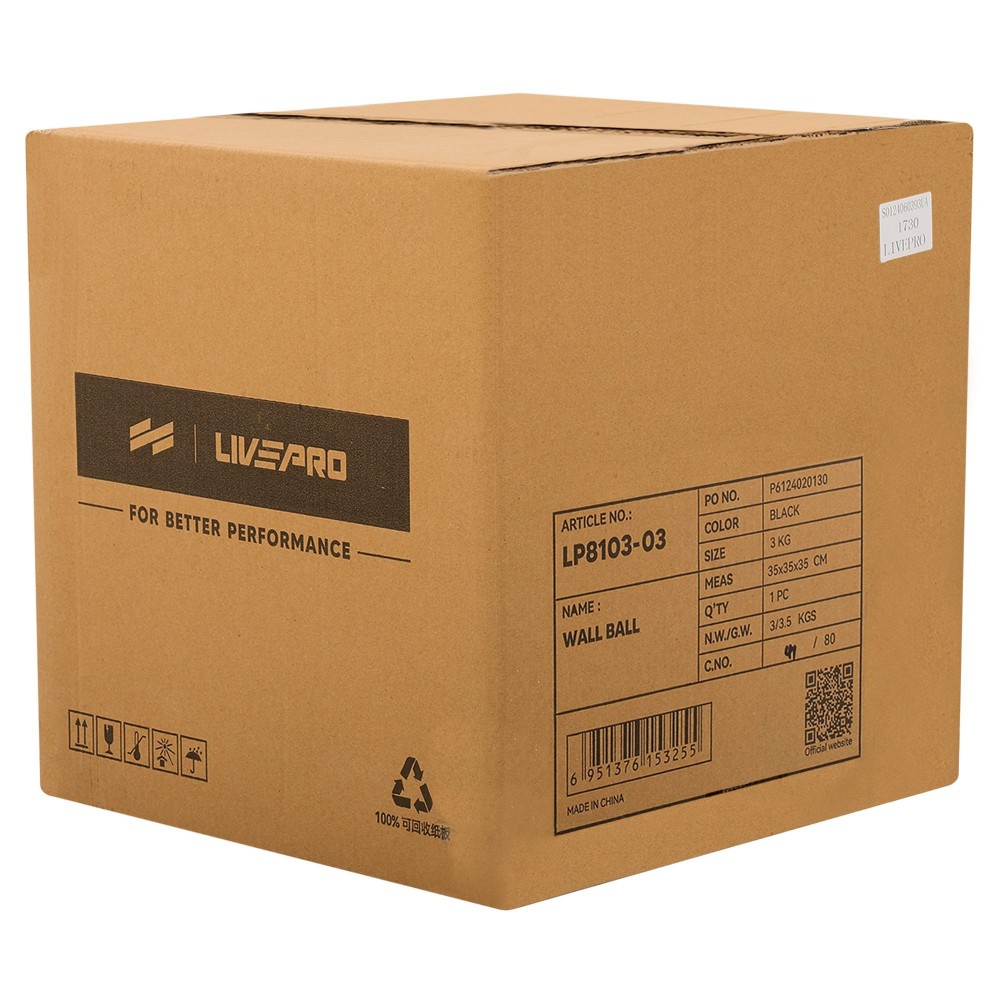 Мяч набивной медицинский для кроссфита WALL BALL LiveUp LP8103-3 3кг черный