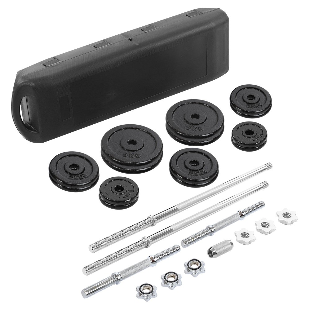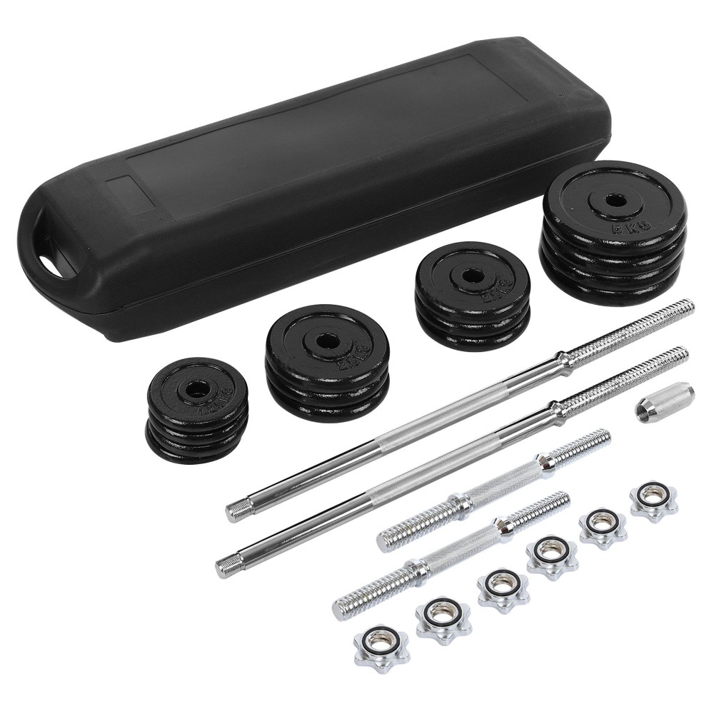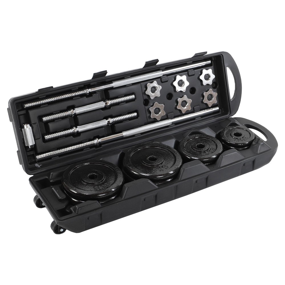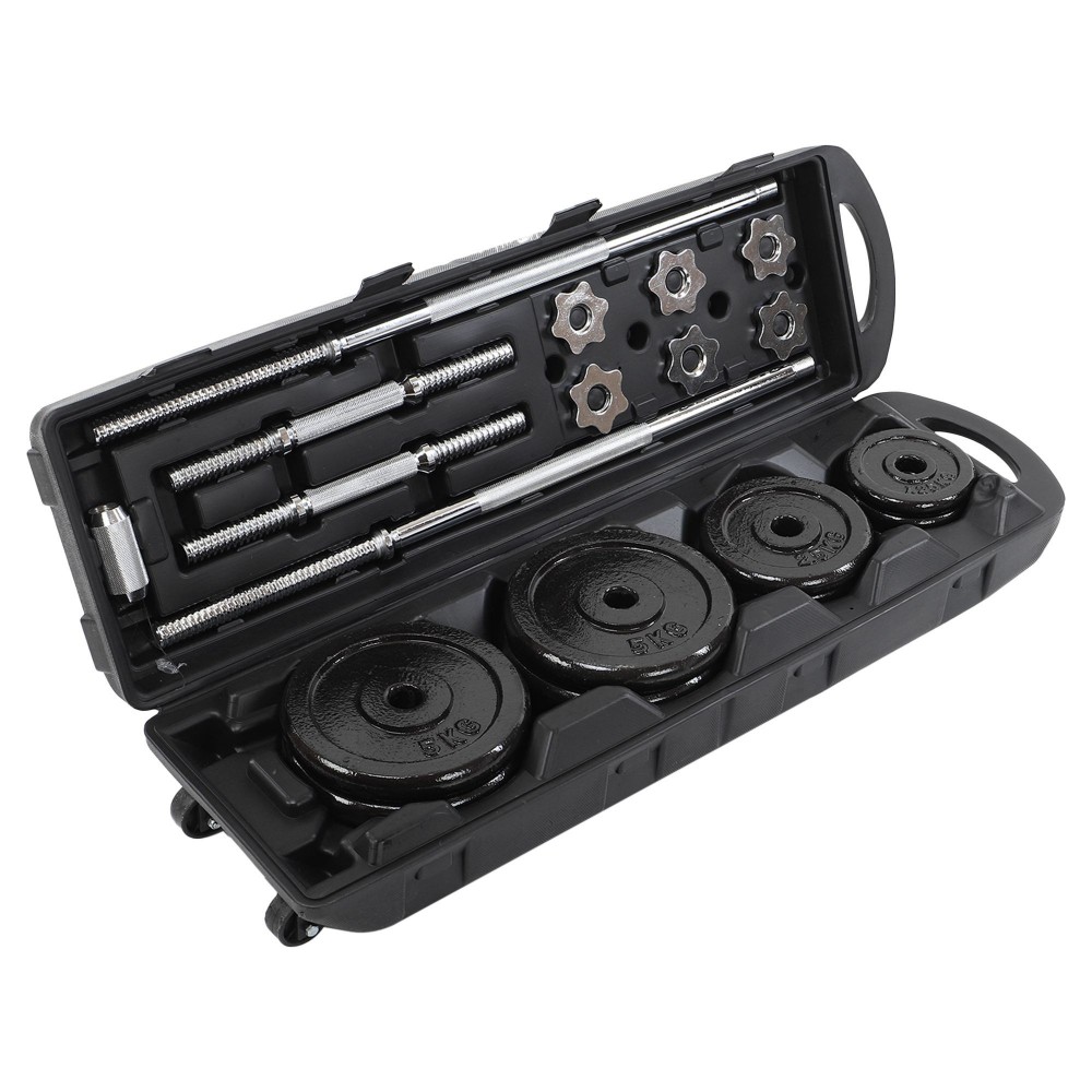 Набор, гантелей, со, штангой, 3в1, пластиковом, кейсе, 50кг, Zelart, TA-9641, 2шт, 25кг, черный