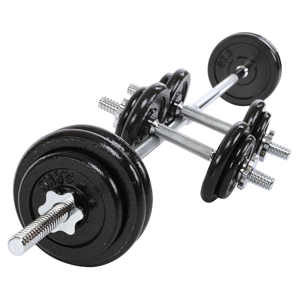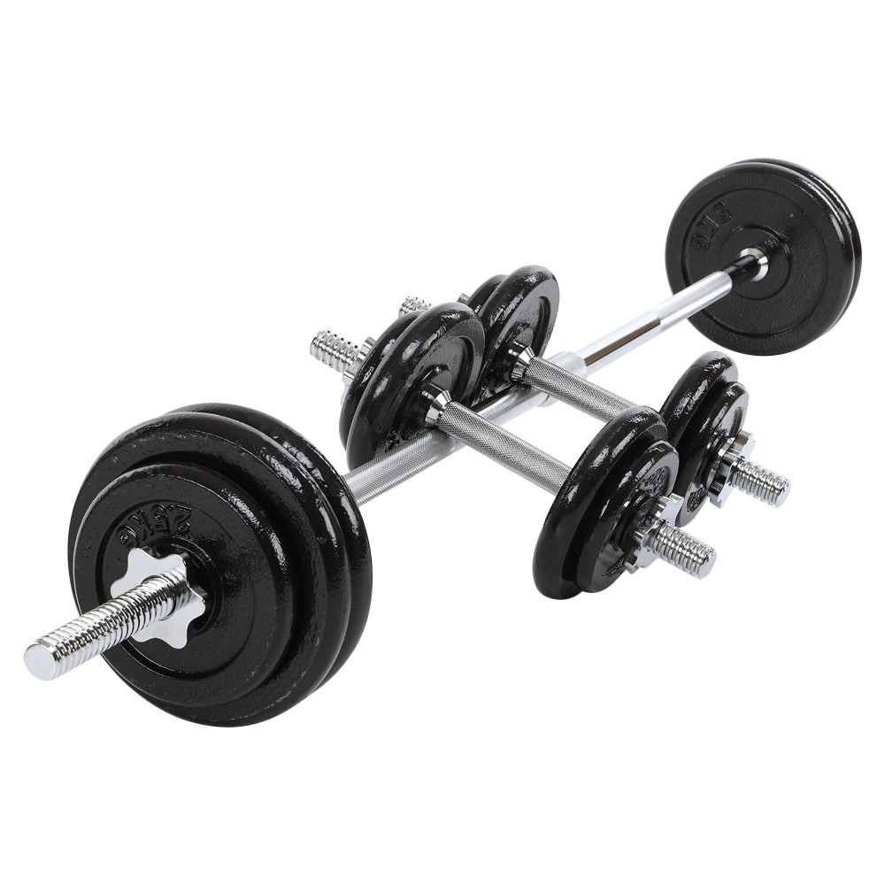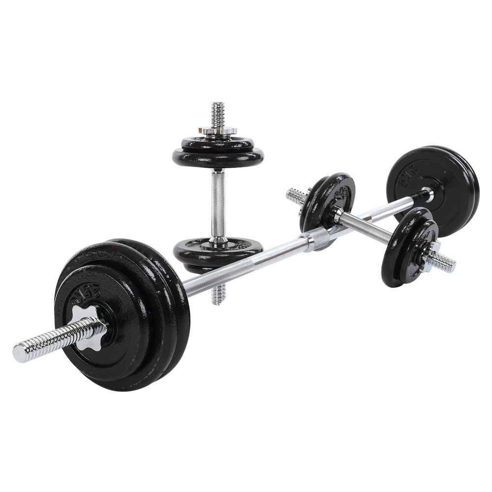 - Набор гантелей со штангой позволяет регулировать вес, что позволяет вам настраивать нагрузку в соответствии с вашими потребностями и тренировочной программой.