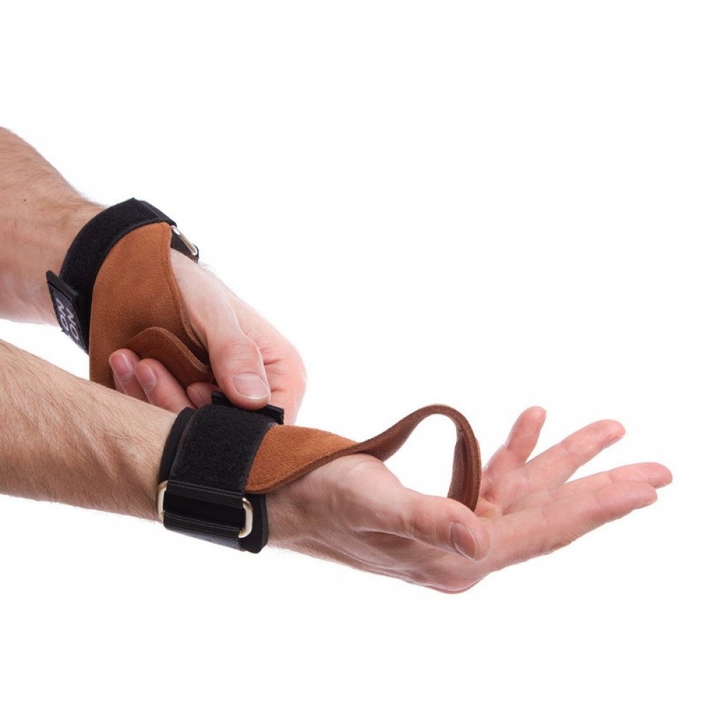 Универсальные накладки для защиты рук во время тренировок изготовлены из синтетического неопрена и натуральной кожи. Неопрен не впитывает влагу, проводит тепло тела и обладает компрессионными свойства. Натуральная кожа защищает от скольжения штанги в руках, от повреждения кожи ладоней.
