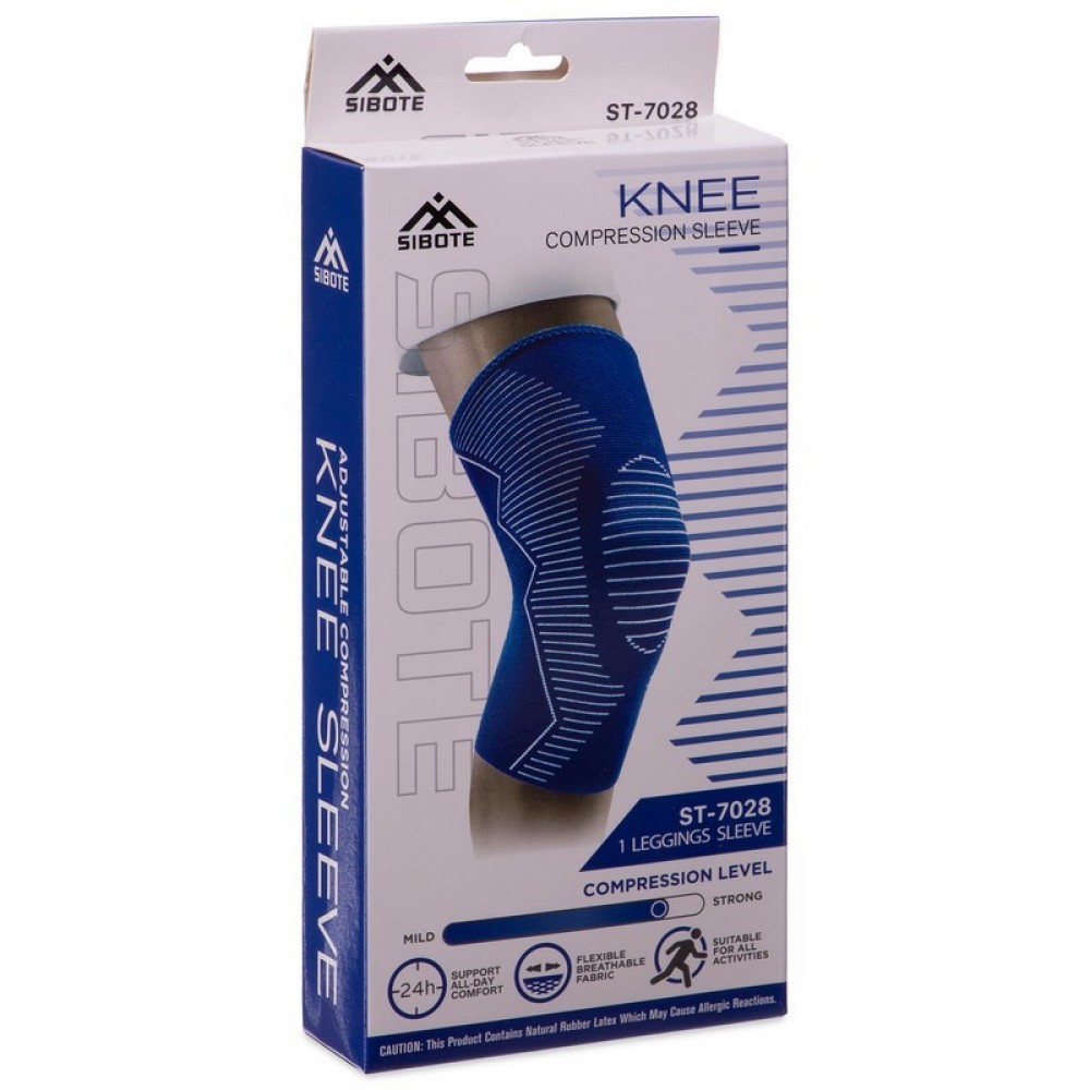Наколенник, бандаж, эластичный, SIBOTE, ST-7028, S-XL, 1шт, синий